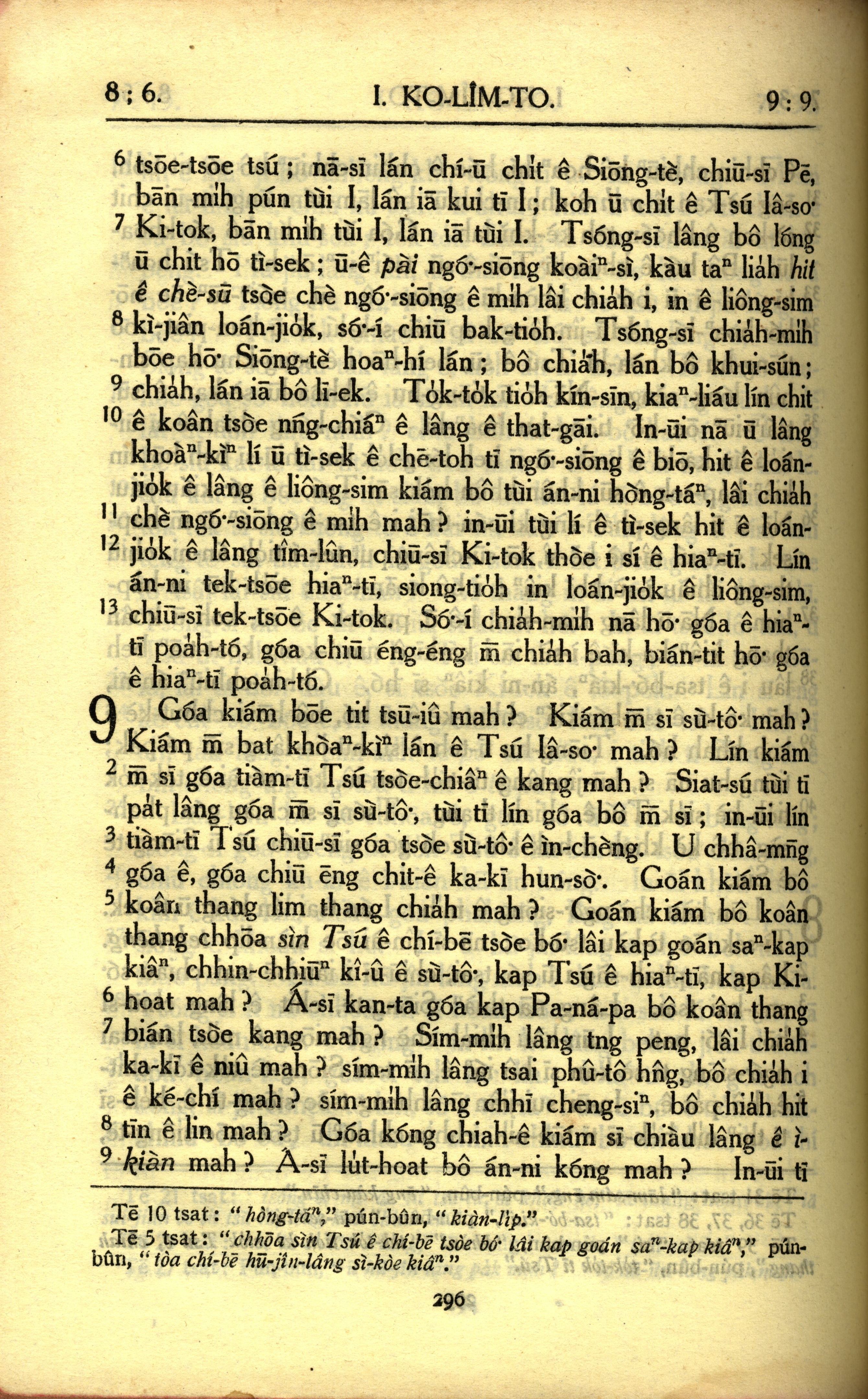 1950年教羅新約全書 哥林多前書 8 章 6 節到 9 章 9 節