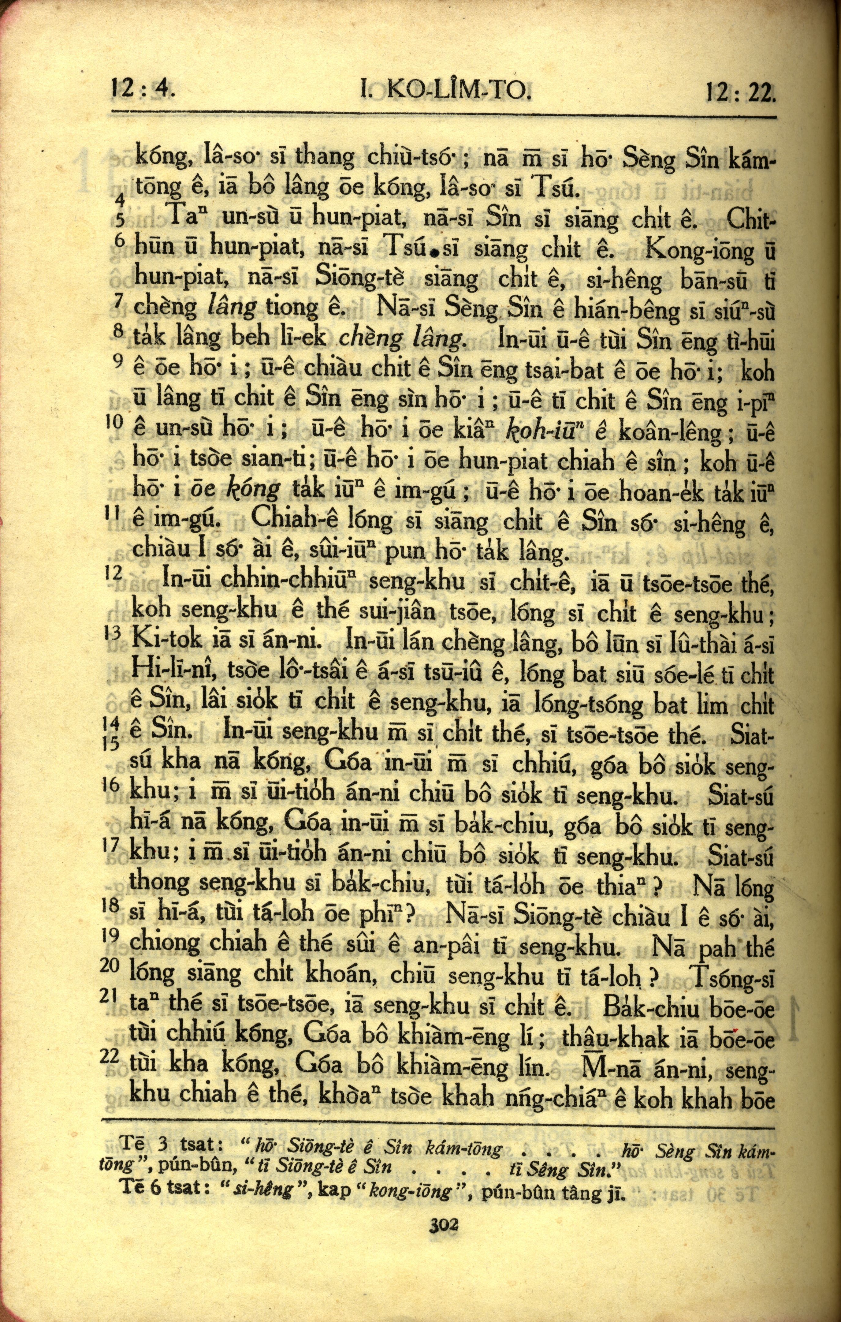1950年教羅新約全書 哥林多前書 12 章 4 節到 12 章 22 節