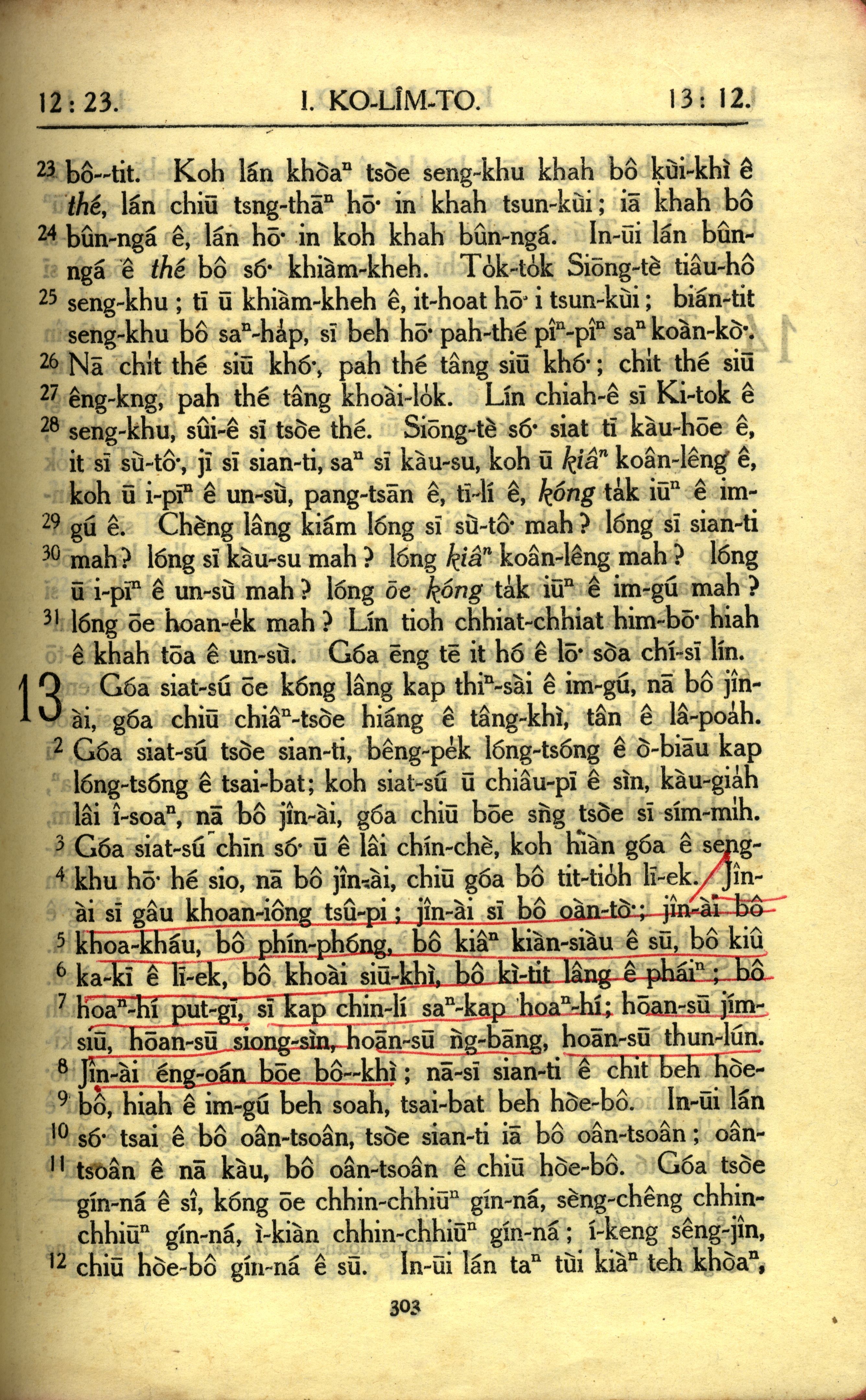 1950年教羅新約全書 哥林多前書 12 章 23 節到 13 章 12 節