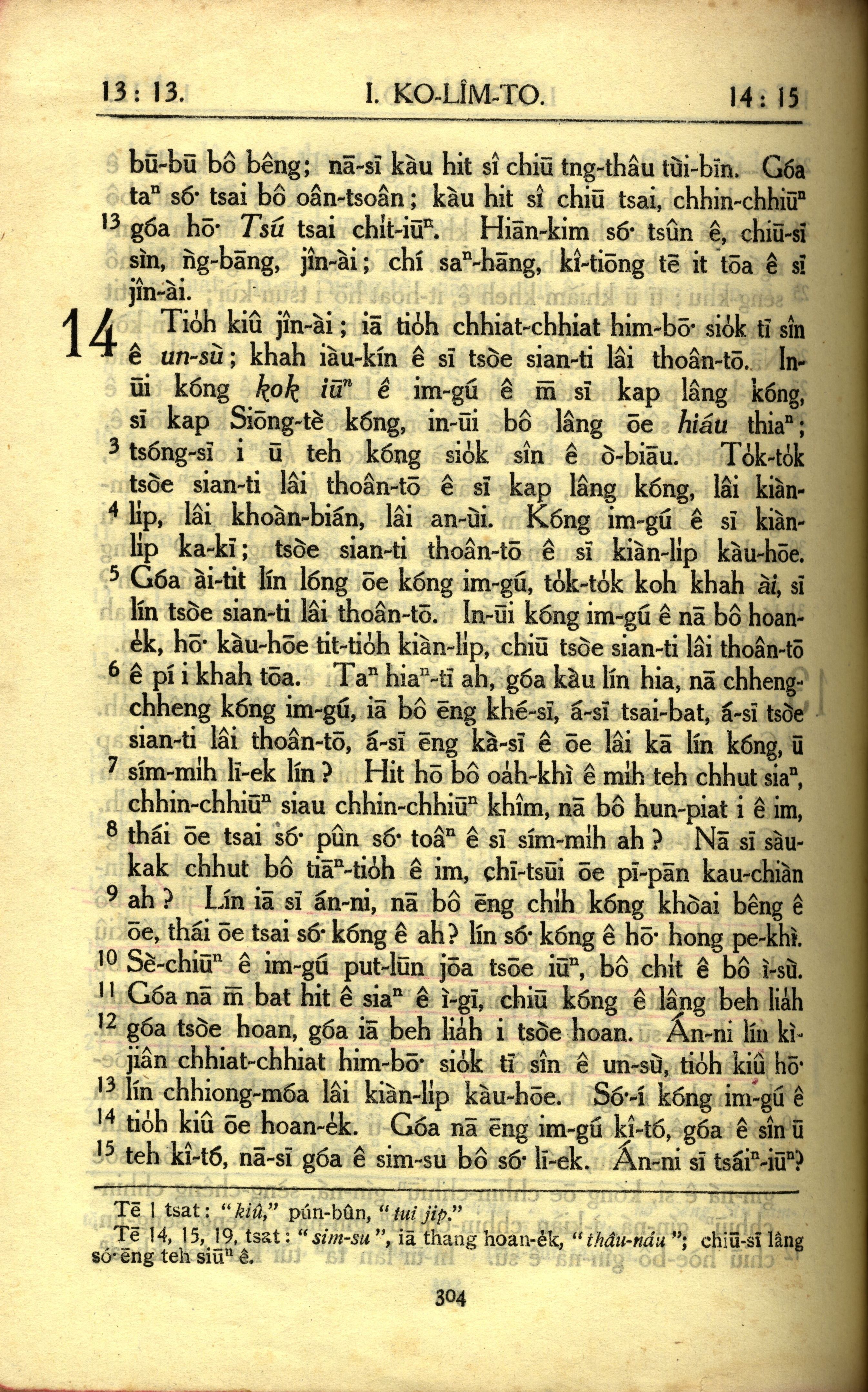 1950年教羅新約全書 哥林多前書 13 章 13 節到 14 章 15 節