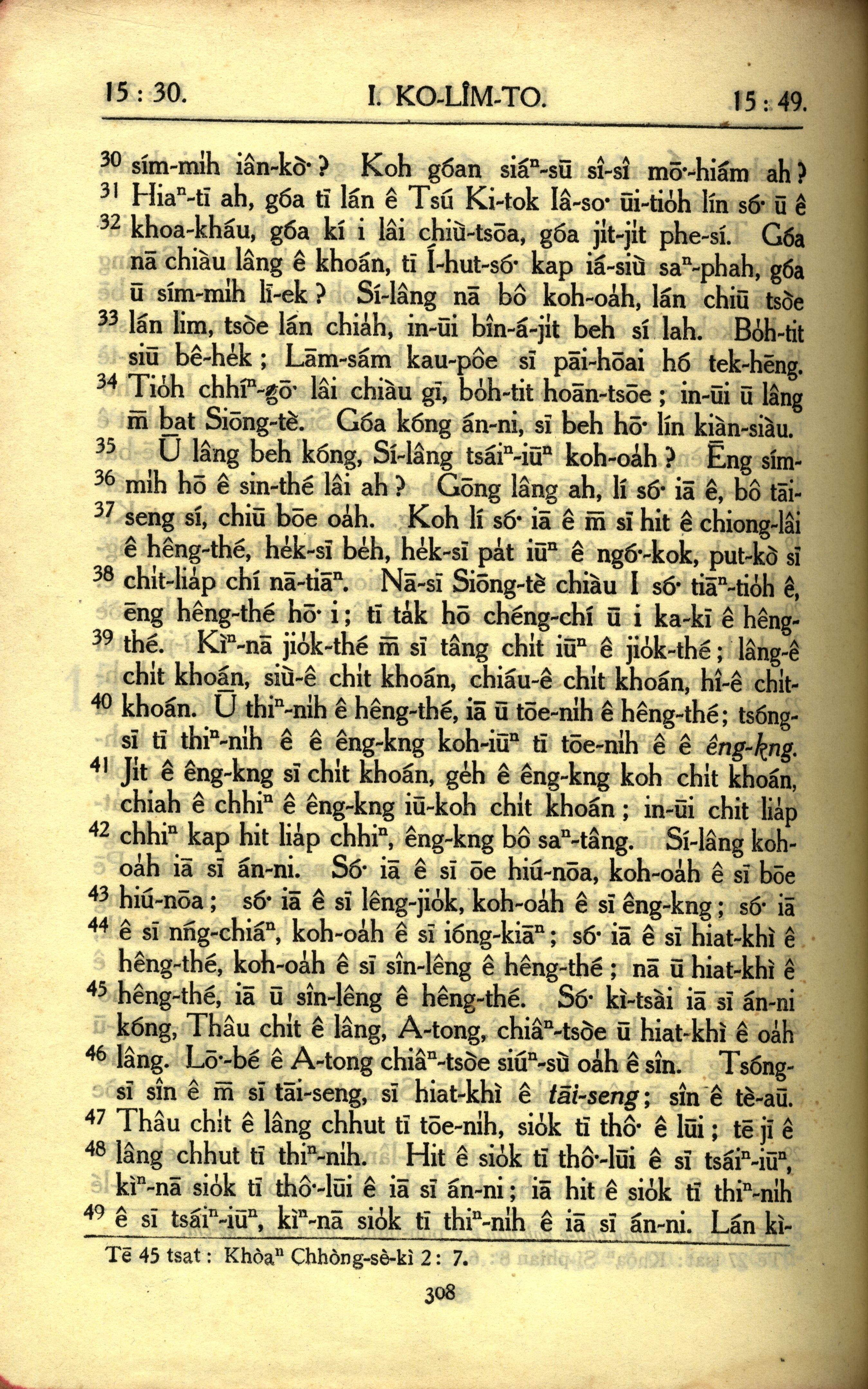 1950年教羅新約全書 哥林多前書 15 章 30 節到 15 章 49 節
