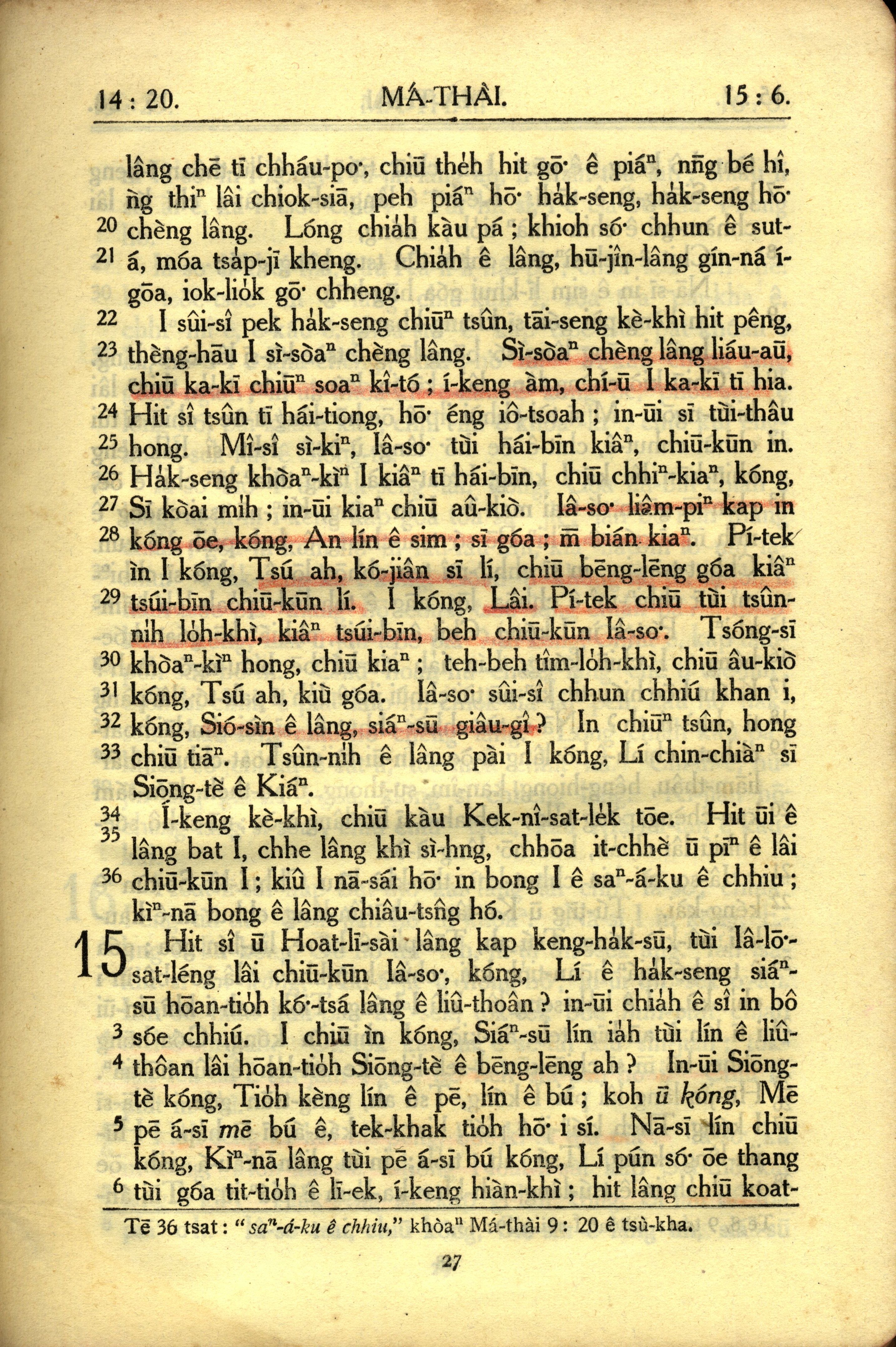 1950年教羅新約全書 馬太福音 14 章 20 節到 15 章 6 節
