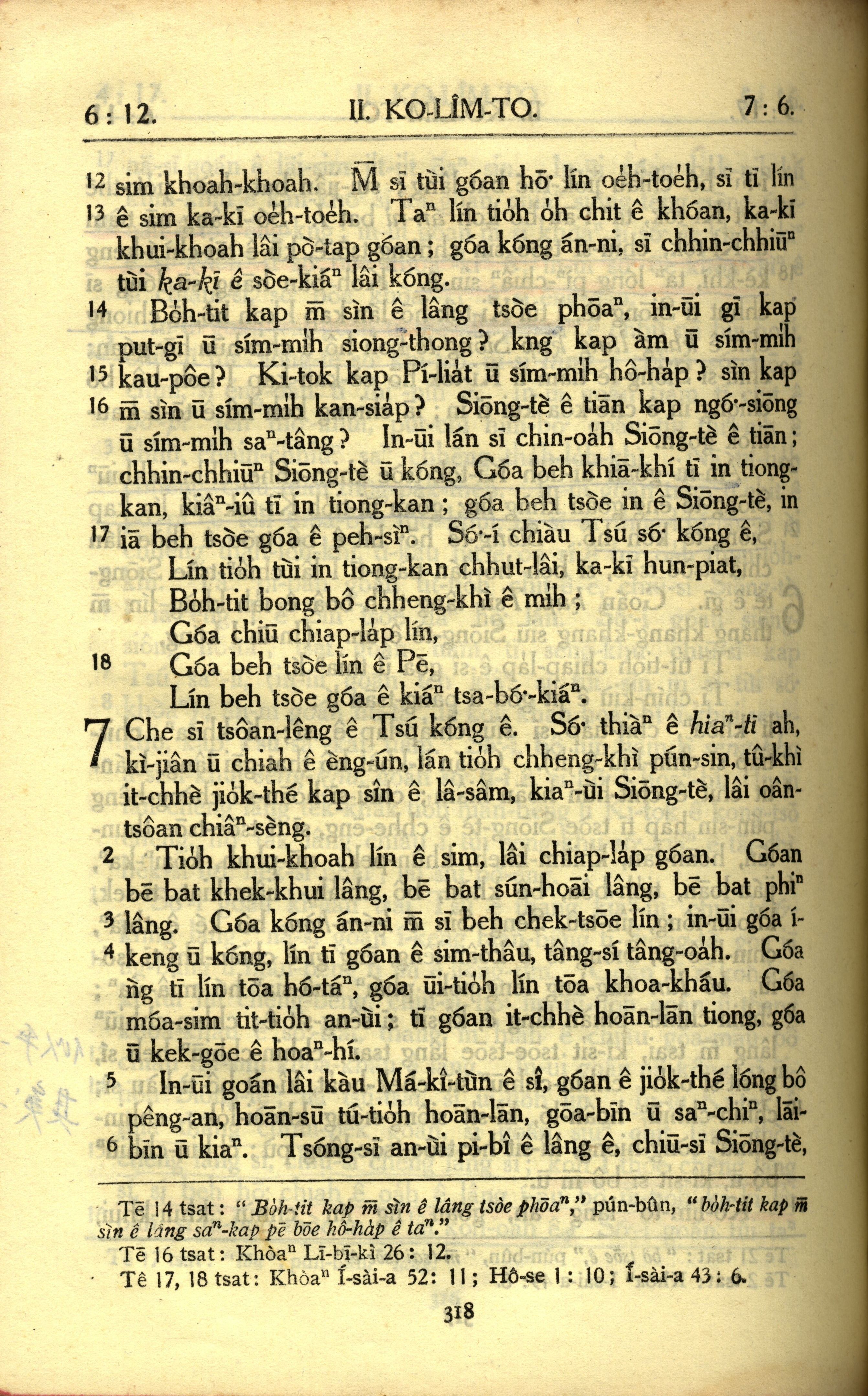 1950年教羅新約全書 哥林多後書 6 章 12 節到 7 章 6 節