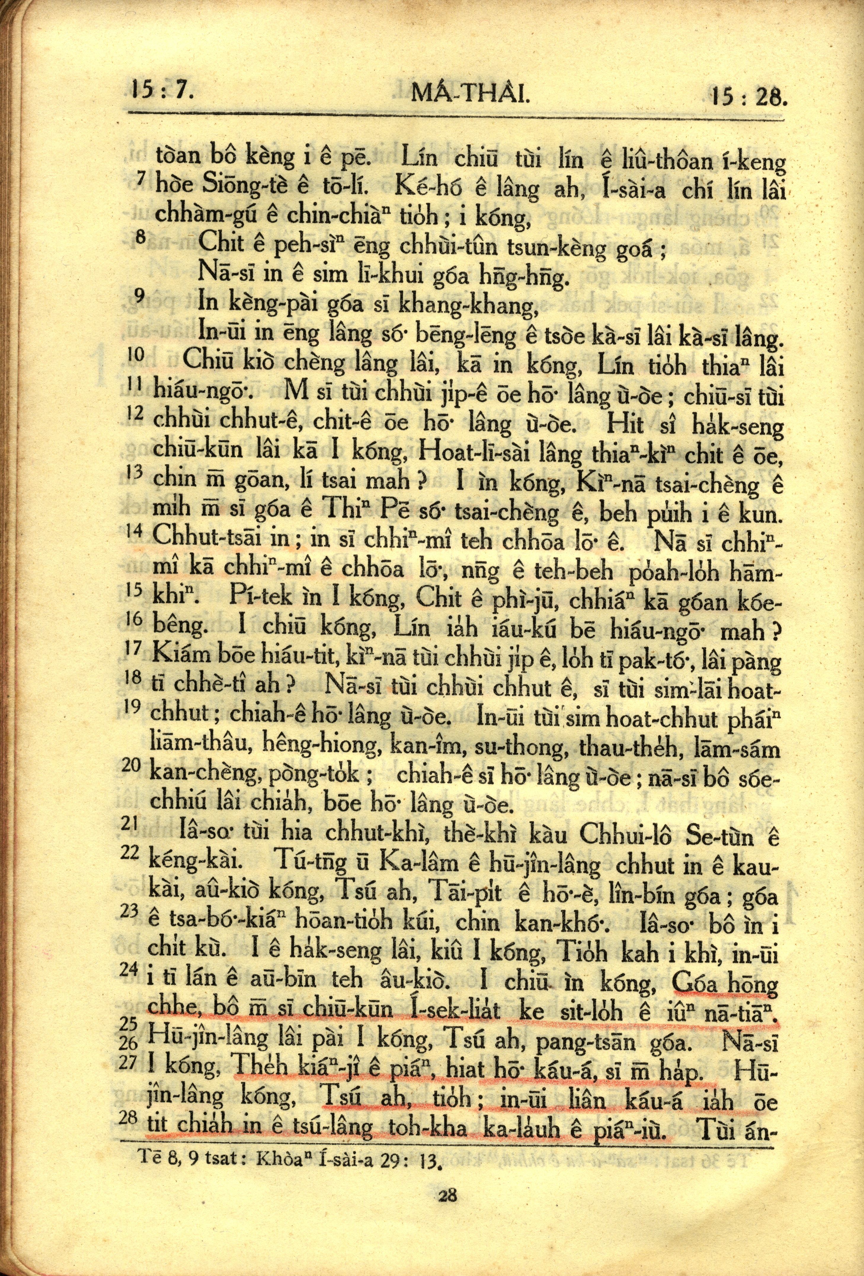 1950年教羅新約全書 馬太福音 15 章 7 節到 15 章 28 節