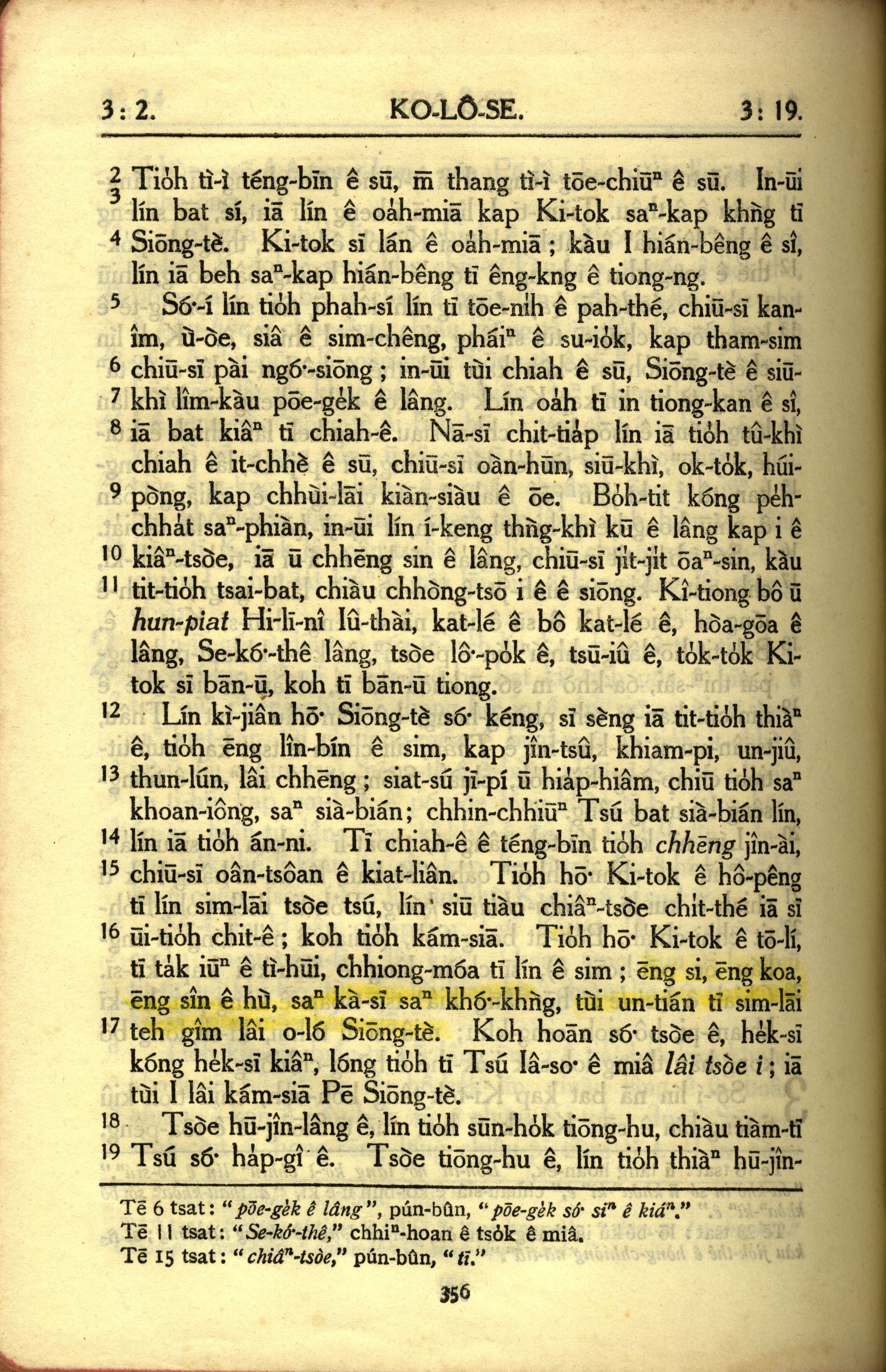 1950年教羅新約全書 歌羅西書 3 章 2 節到 3 章 19 節