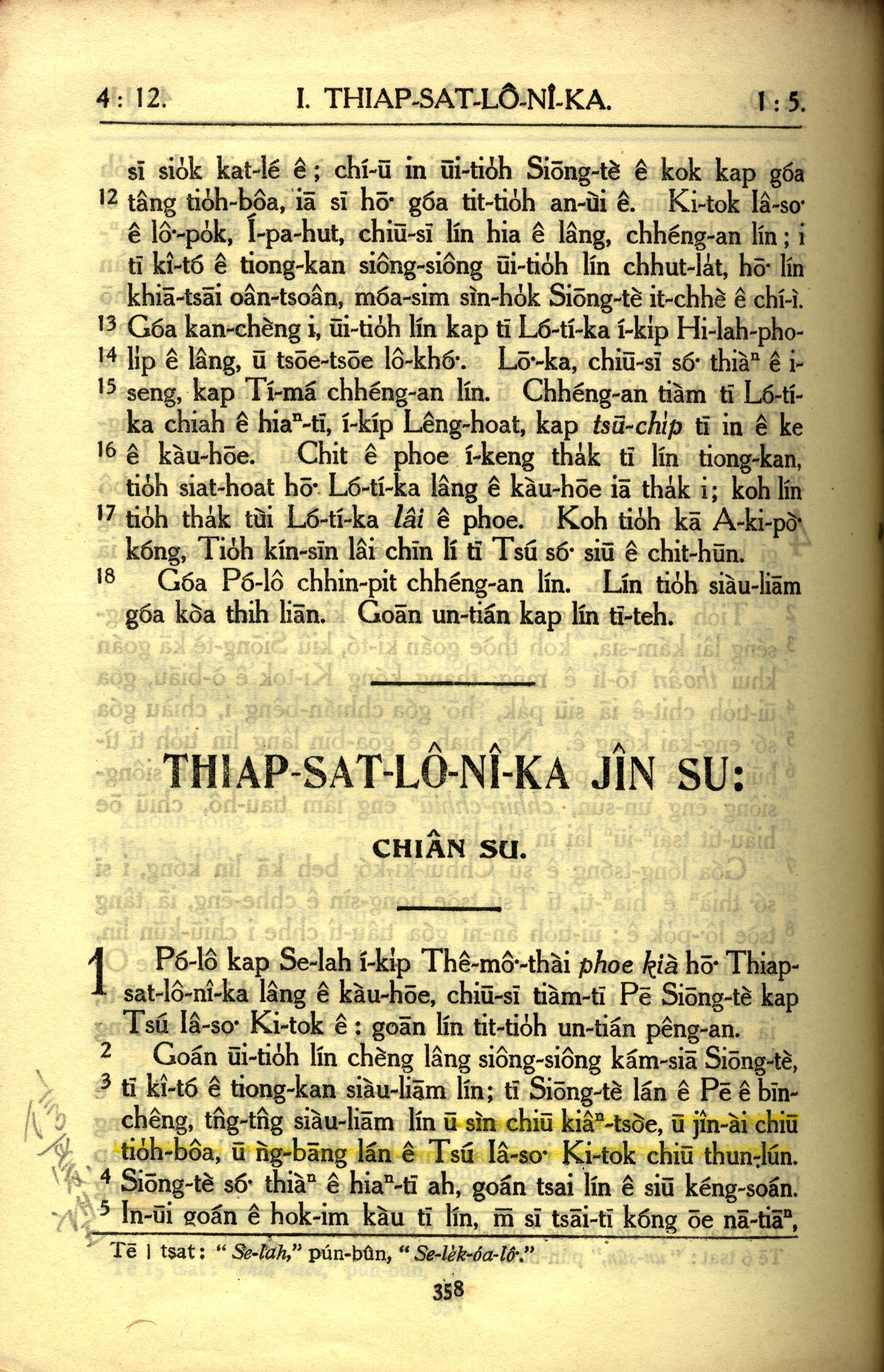 1950年教羅新約全書 帖撒羅尼迦前書 1 章 1 節到 1 章 5 節