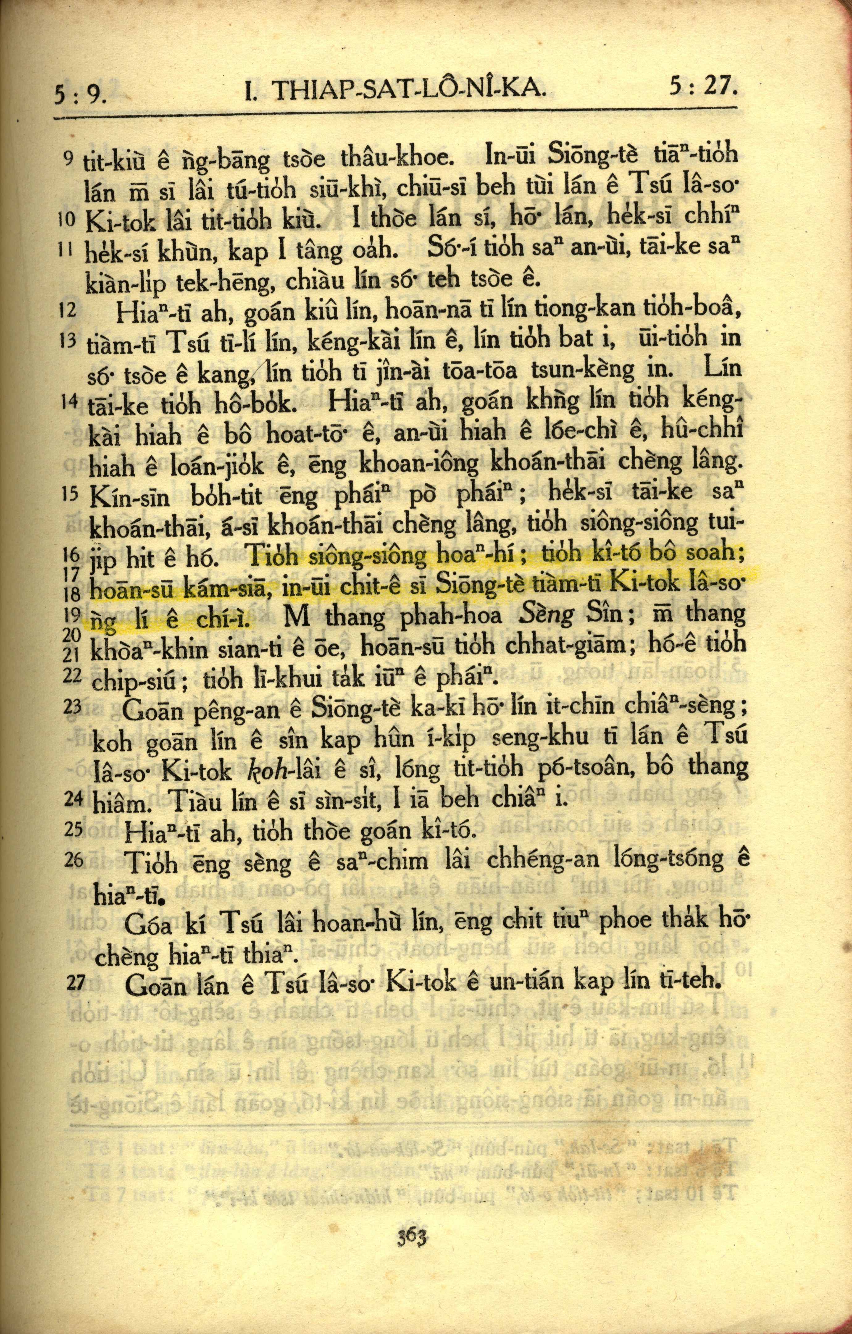1950年教羅新約全書 帖撒羅尼迦前書 5 章 9 節到 5 章 27 節