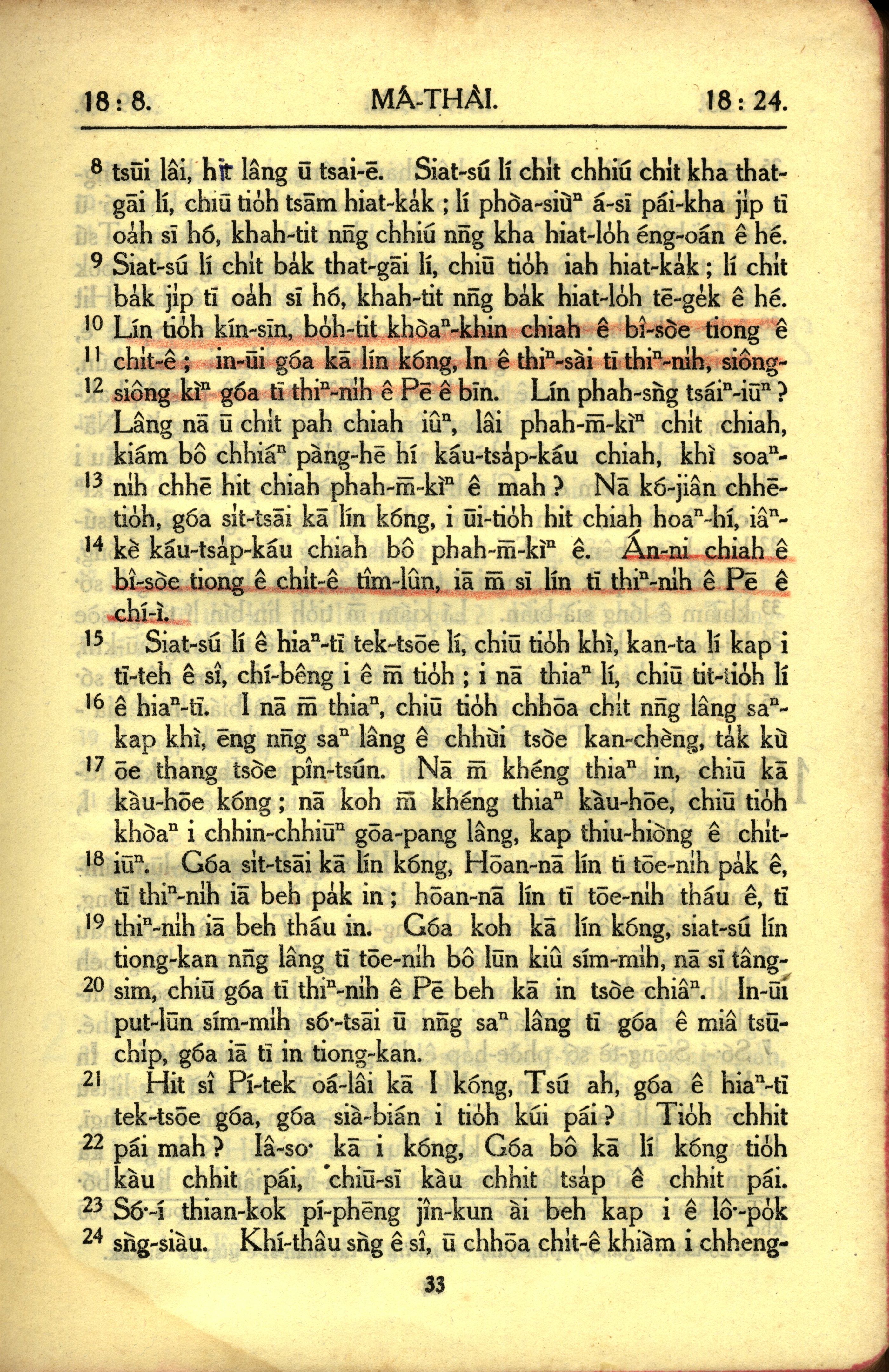 1950年教羅新約全書 馬太福音 18 章 8 節到 18 章 24 節