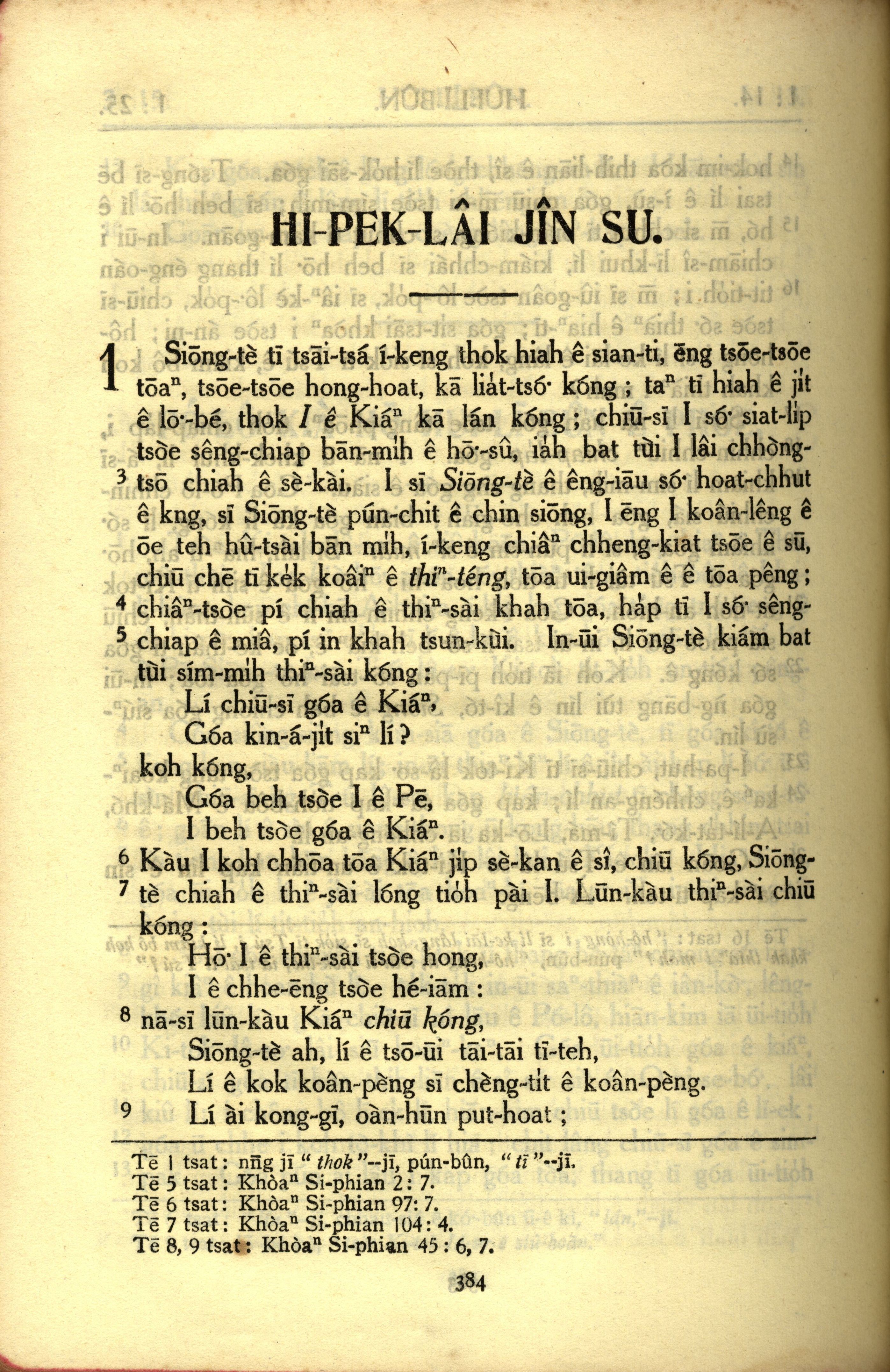 1950年教羅新約全書 希伯來書 1 章 1 節到 1 章 9 節