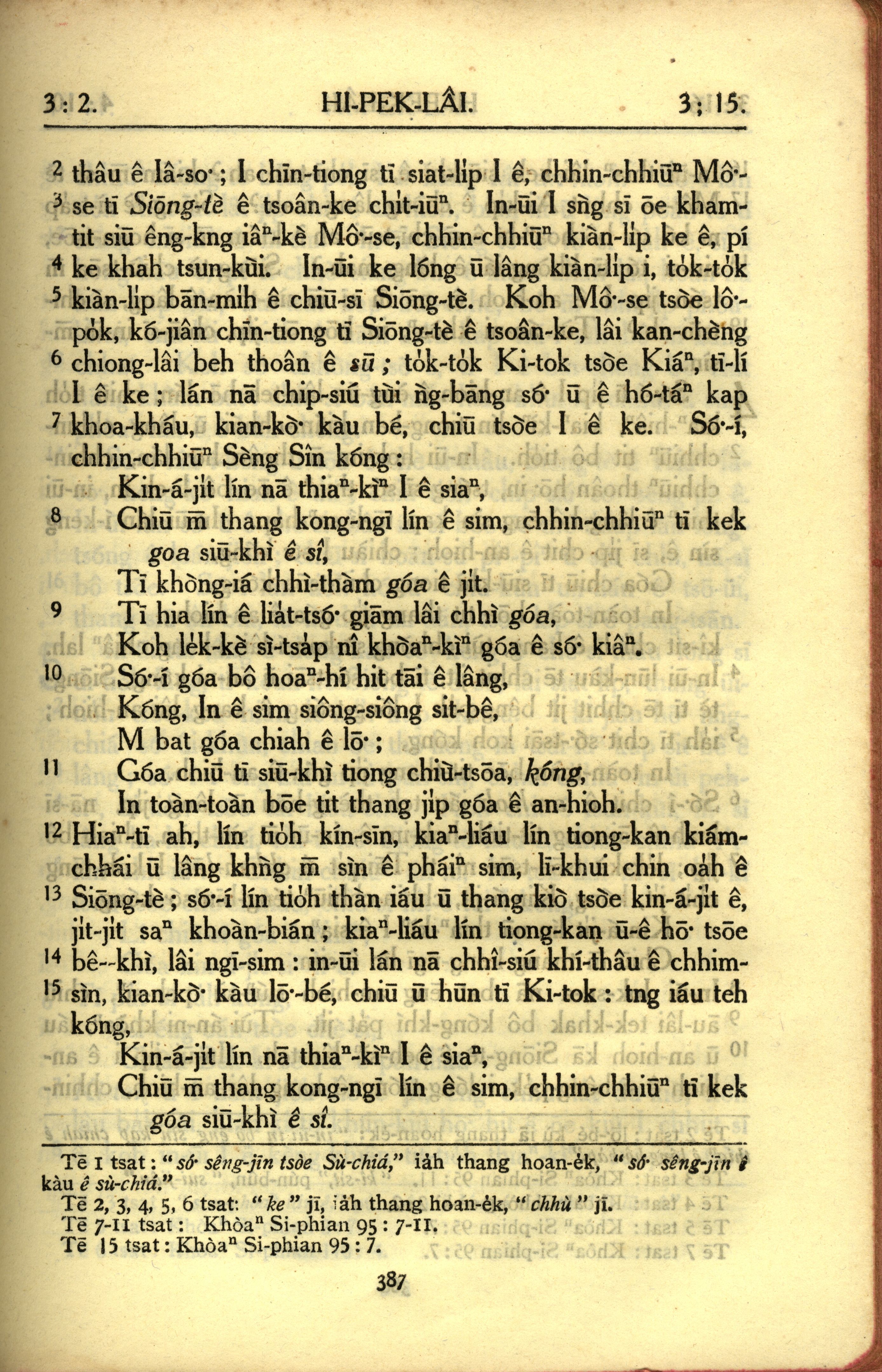 1950年教羅新約全書 希伯來書 3 章 2 節到 3 章 15 節