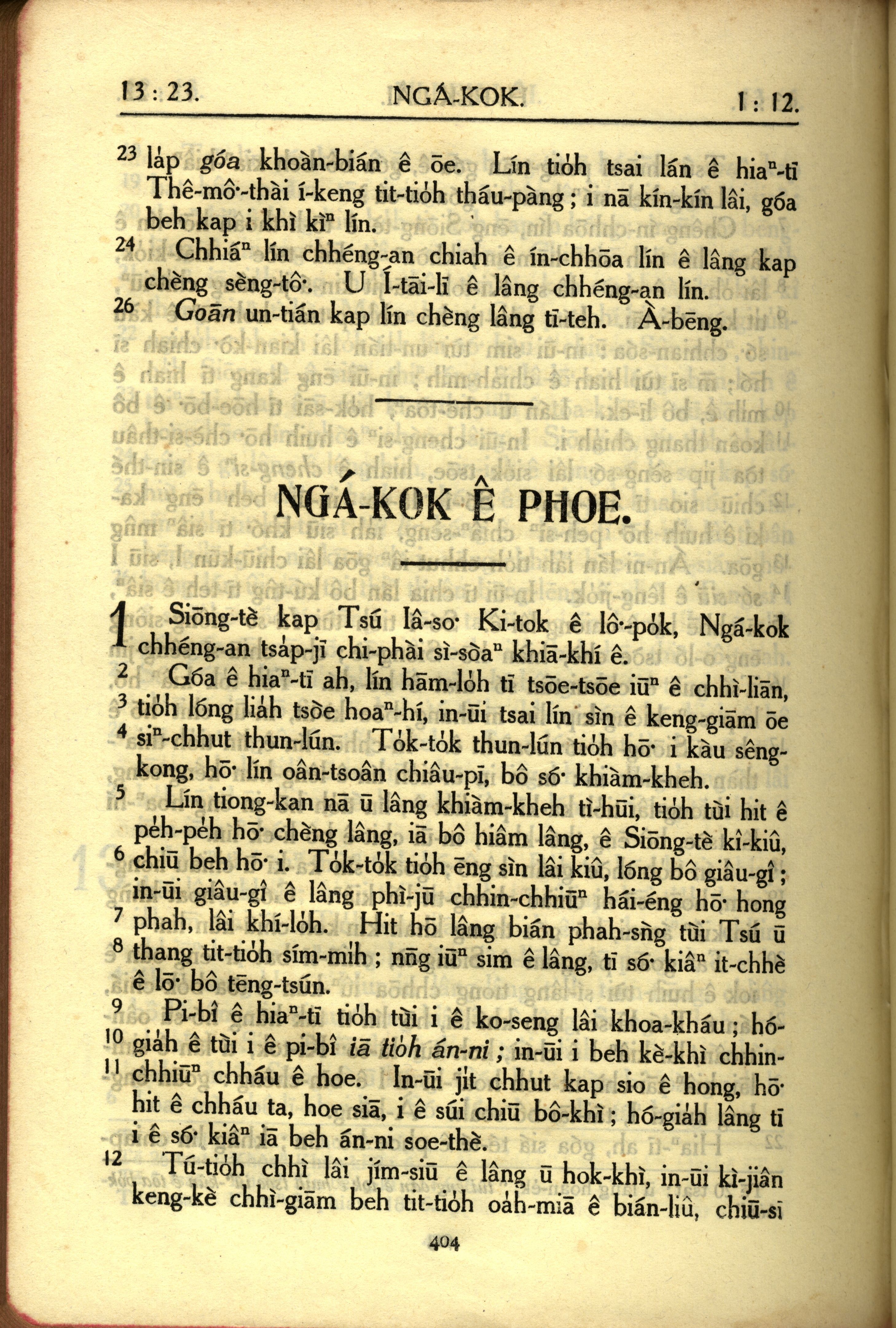 1950年教羅新約全書 希伯來書 13 章 23 節到 13 章 26 節
