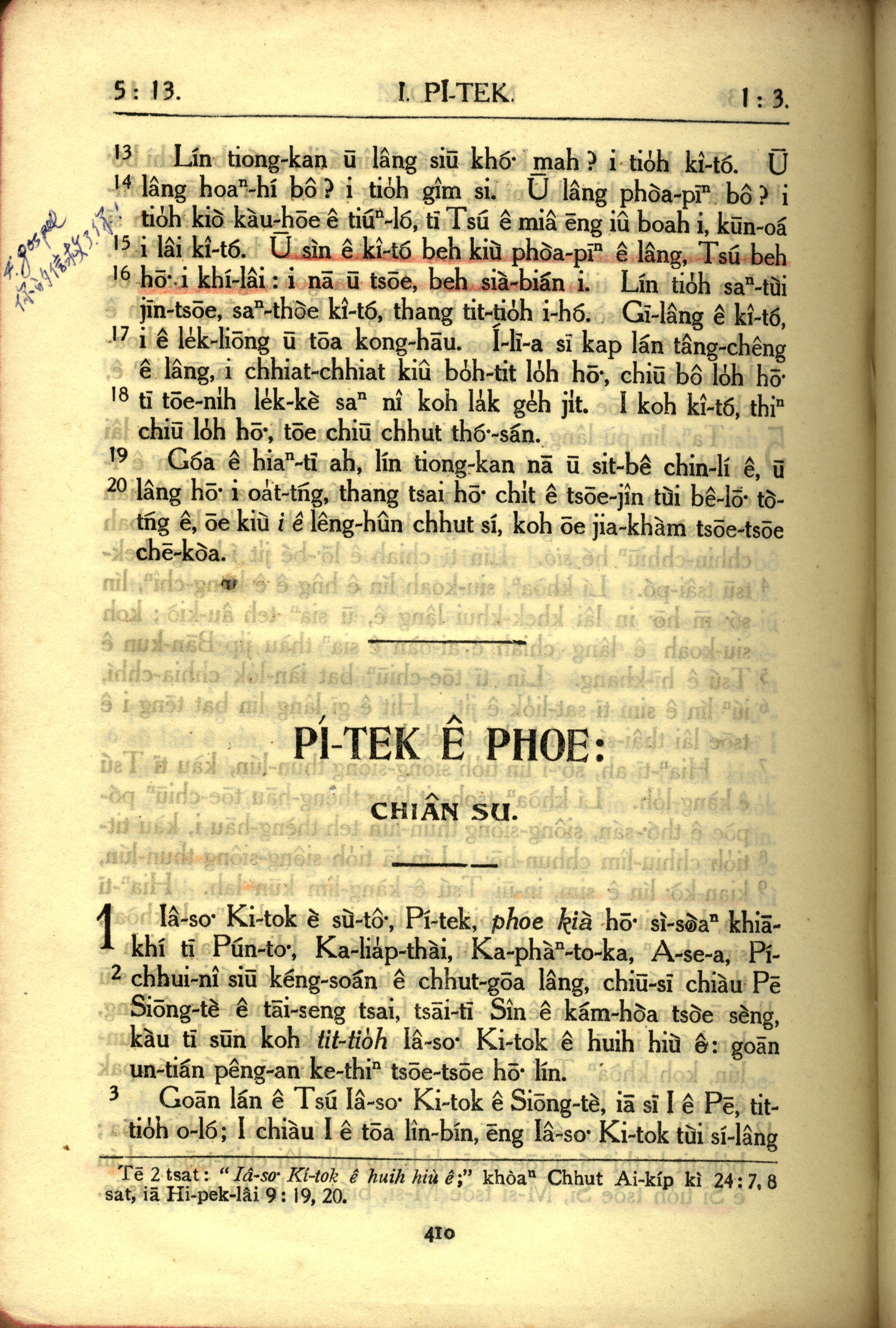 1950年教羅新約全書 彼得前書 1 章 1 節到 1 章 3 節