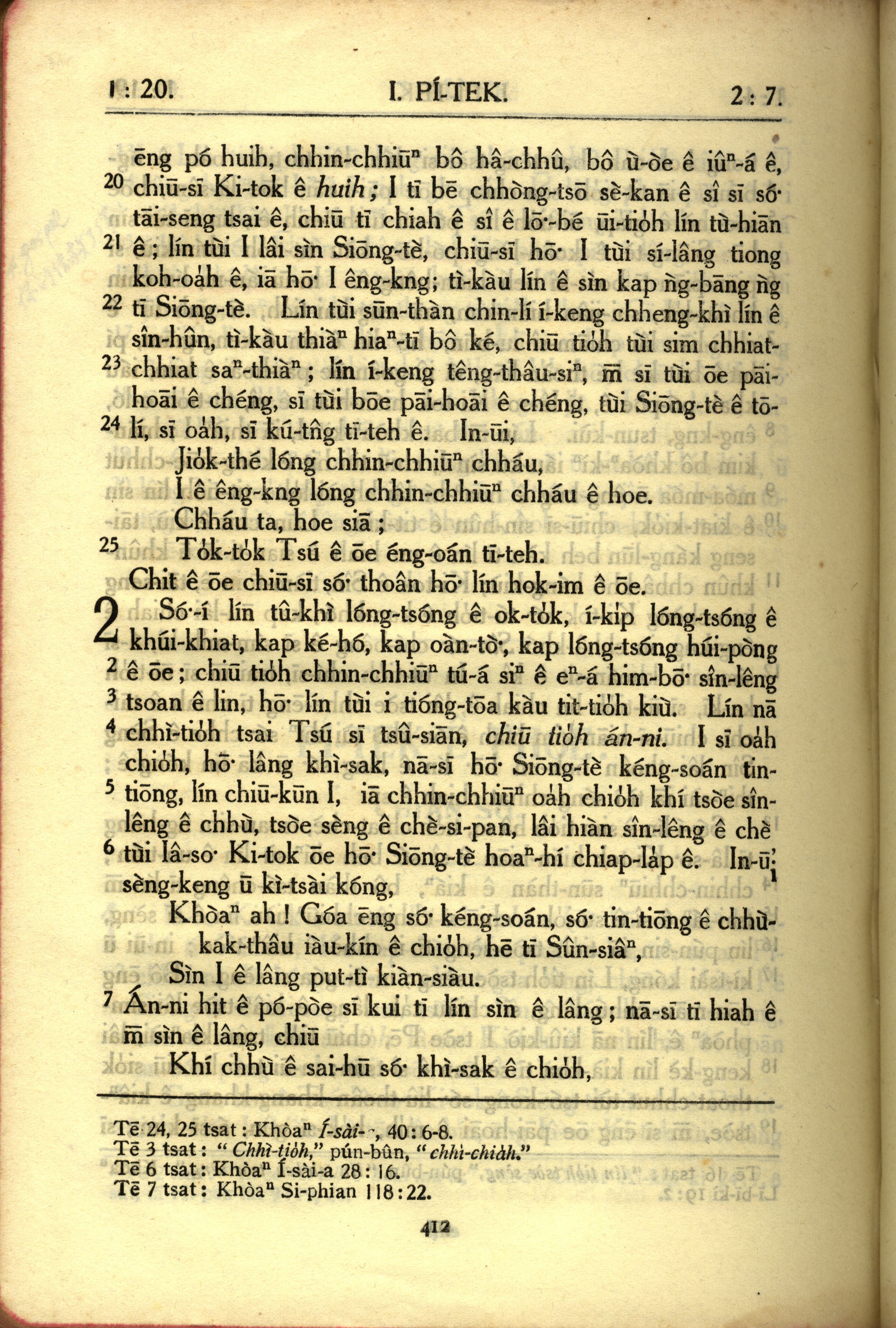 1950年教羅新約全書 彼得前書 1 章 20 節到 2 章 7 節