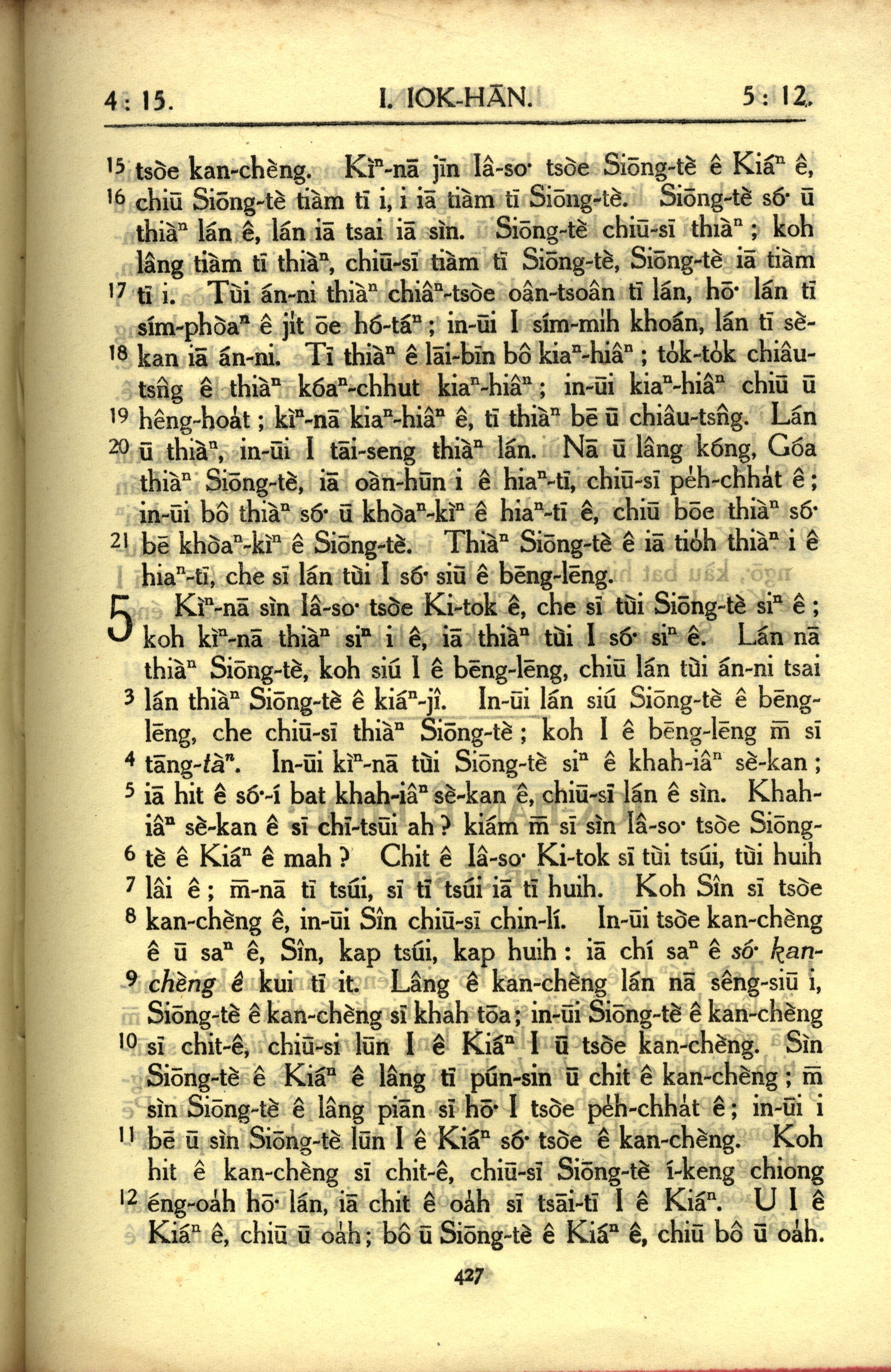 1950年教羅新約全書 約翰一書 4 章 15 節到 5 章 12 節