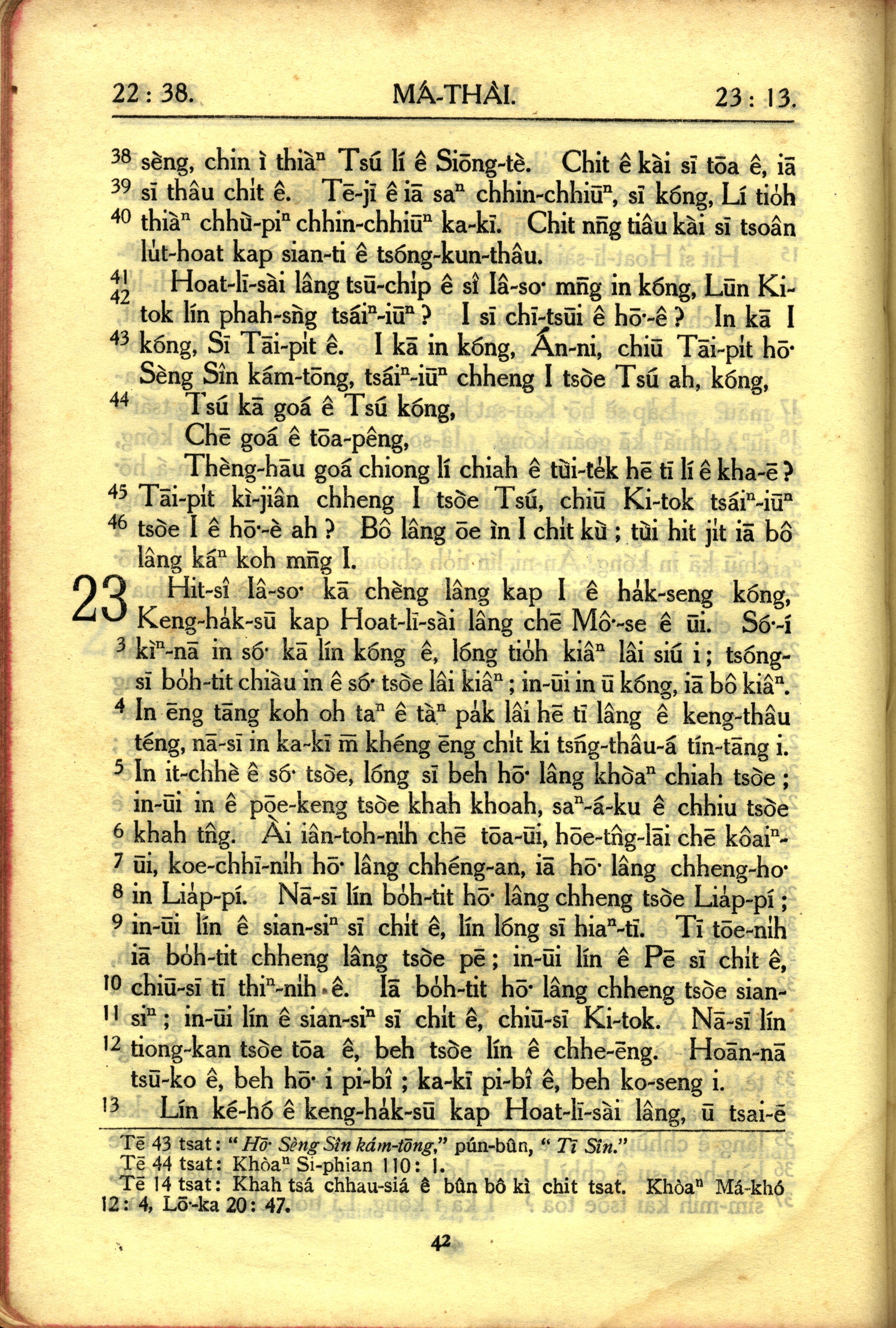1950年教羅新約全書 馬太福音 22 章 38 節到 23 章 13 節