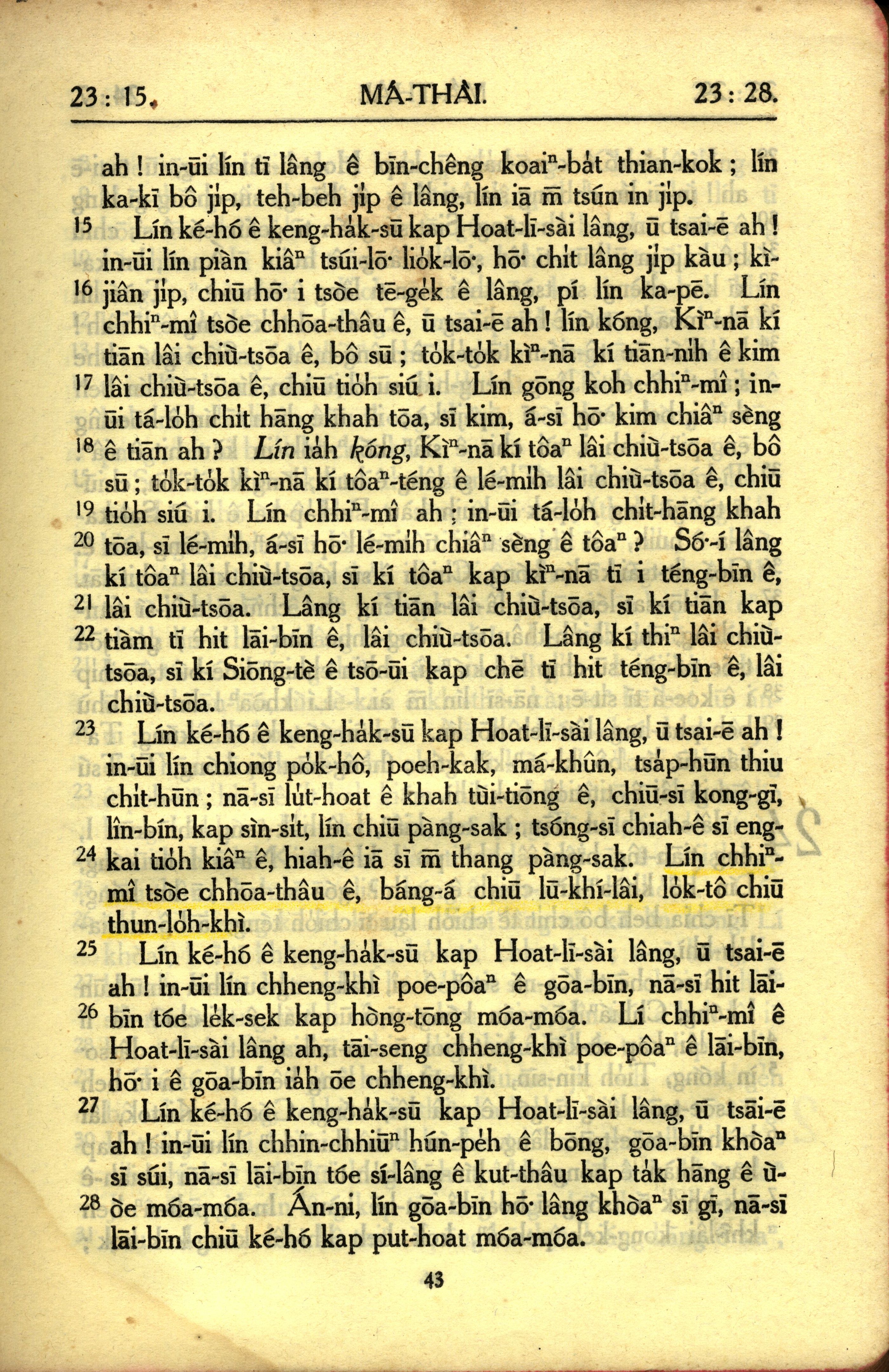 1950年教羅新約全書 馬太福音 23 章 15 節到 23 章 28 節