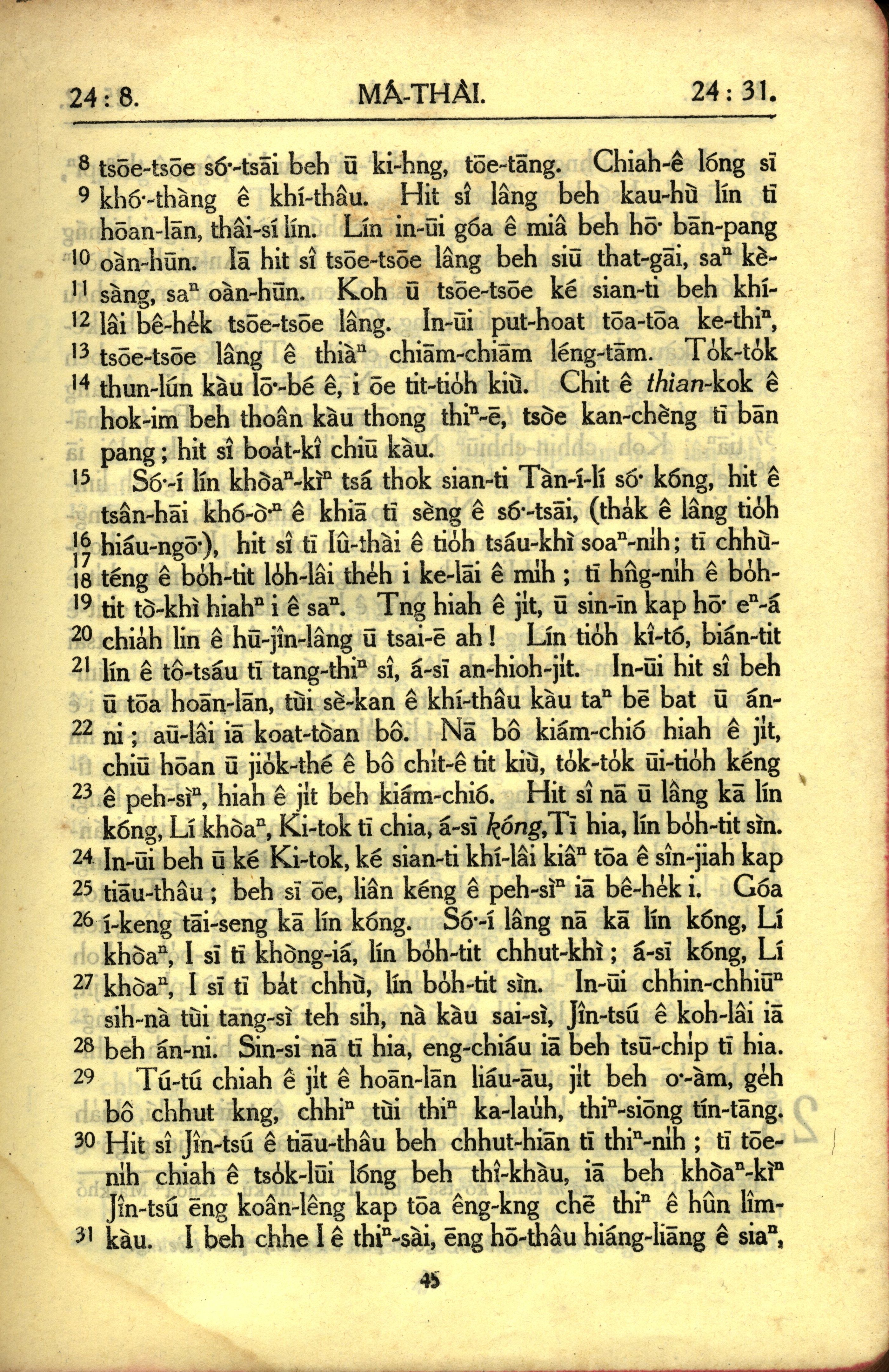 1950年教羅新約全書 馬太福音 24 章 8 節到 24 章 31 節