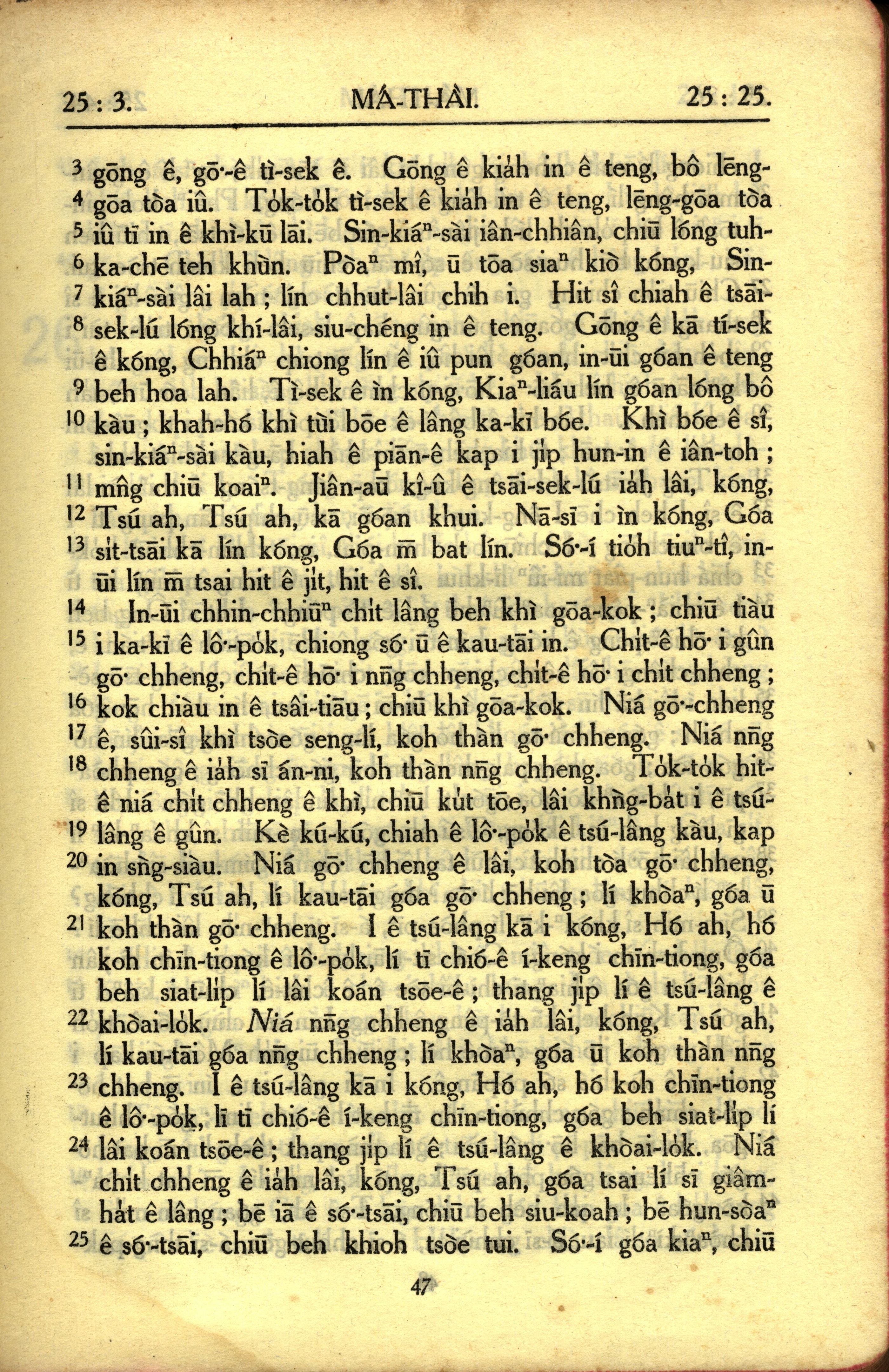 1950年教羅新約全書 馬太福音 25 章 3 節到 25 章 25 節