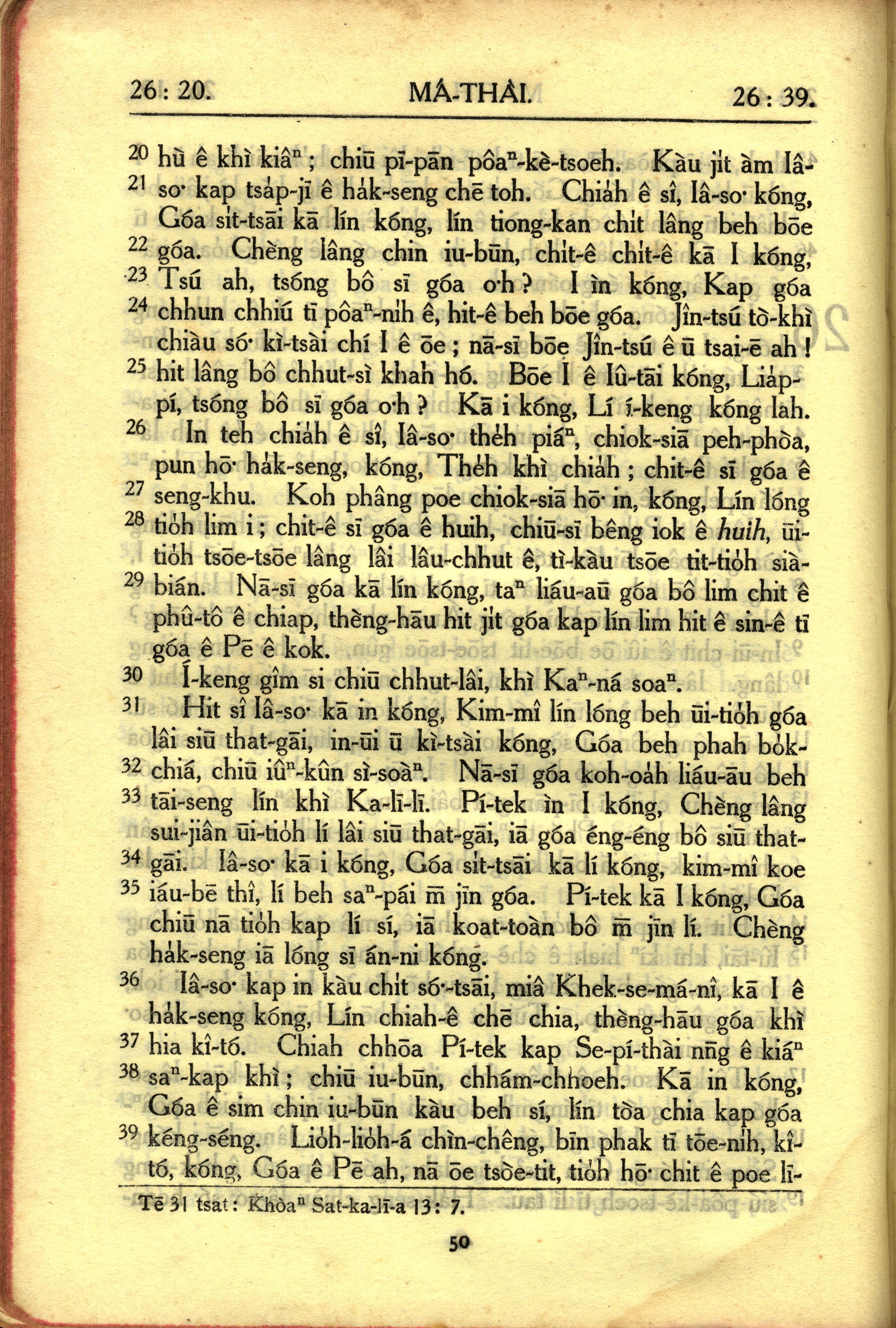 1950年教羅新約全書 馬太福音 26 章 20 節到 26 章 39 節