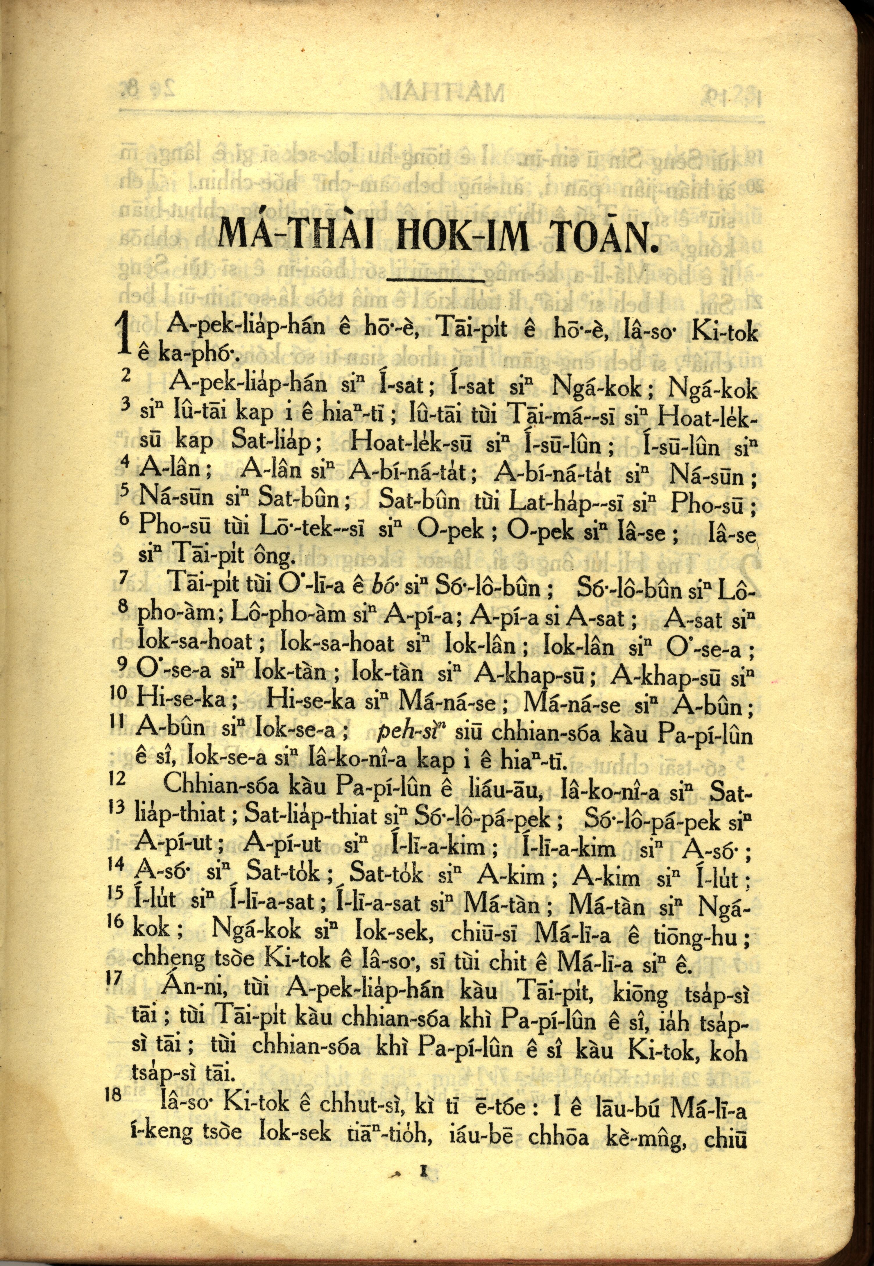 1950年教羅新約全書 馬太福音 1 章 1 節到 1 章 18 節