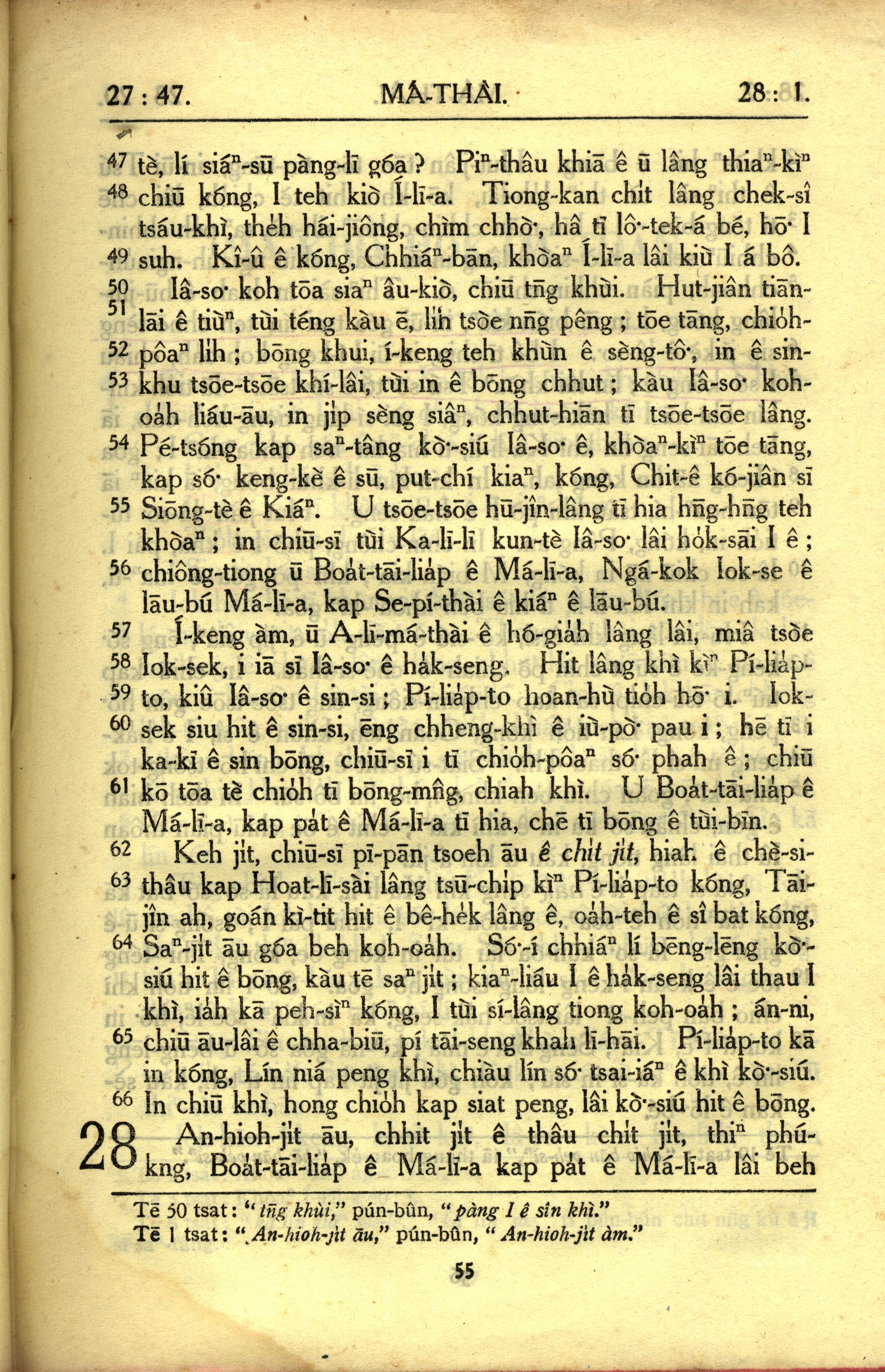1950年教羅新約全書 馬太福音 27 章 47 節到 28 章 1 節