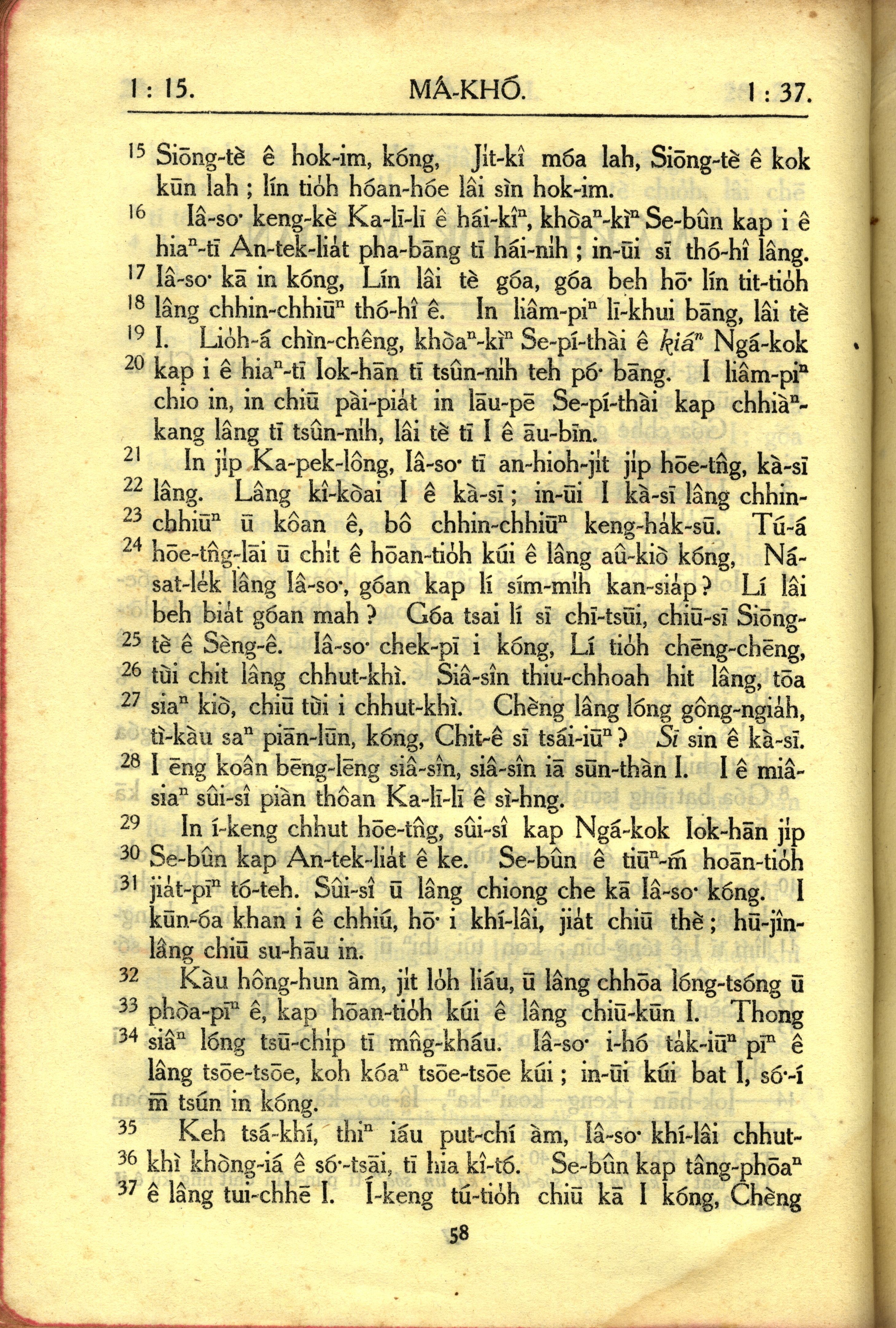 1950年教羅新約全書 馬可福音 1 章 15 節到 1 章 37 節