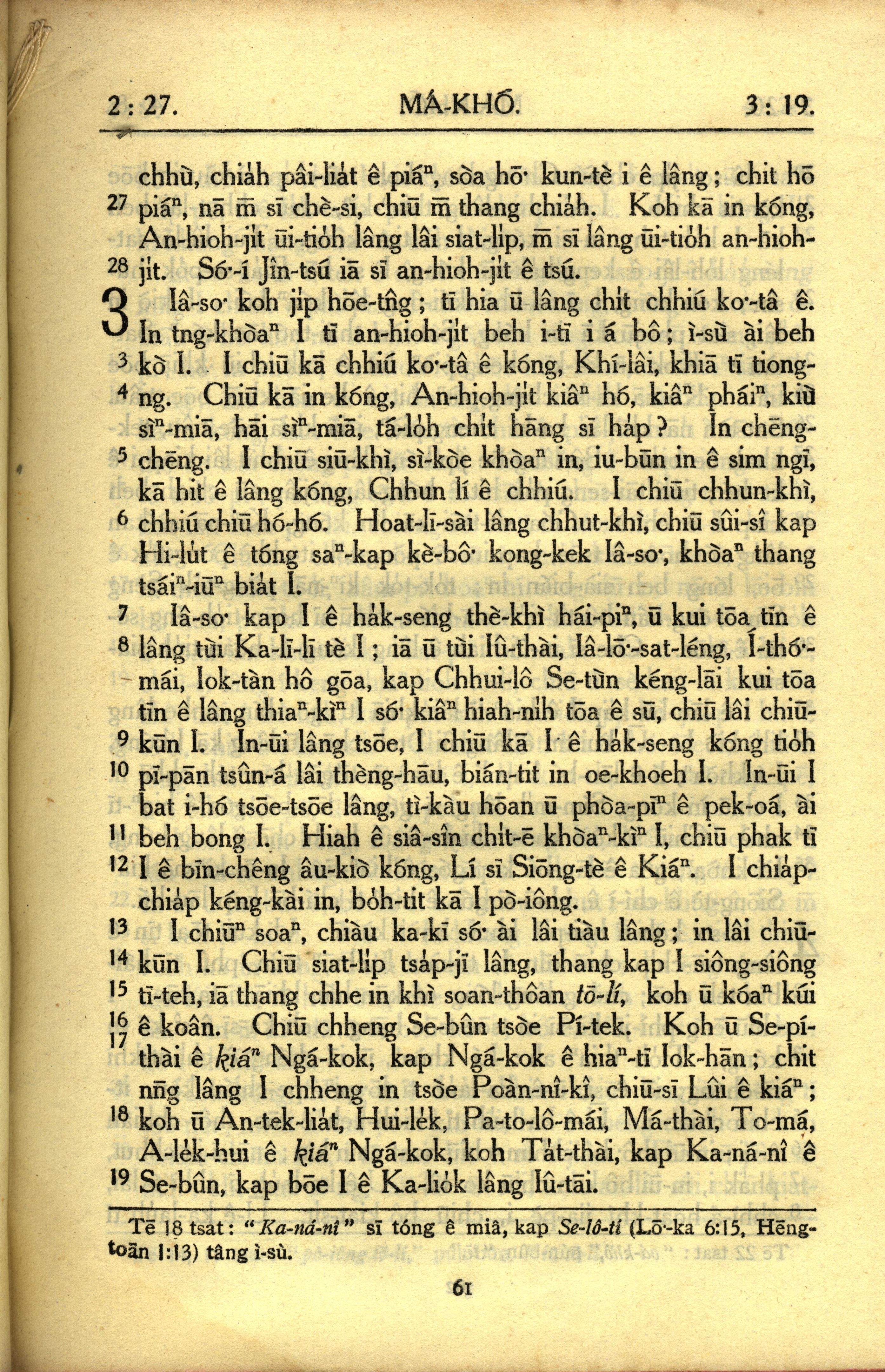 1950年教羅新約全書 馬可福音 2 章 27 節到 3 章 19 節