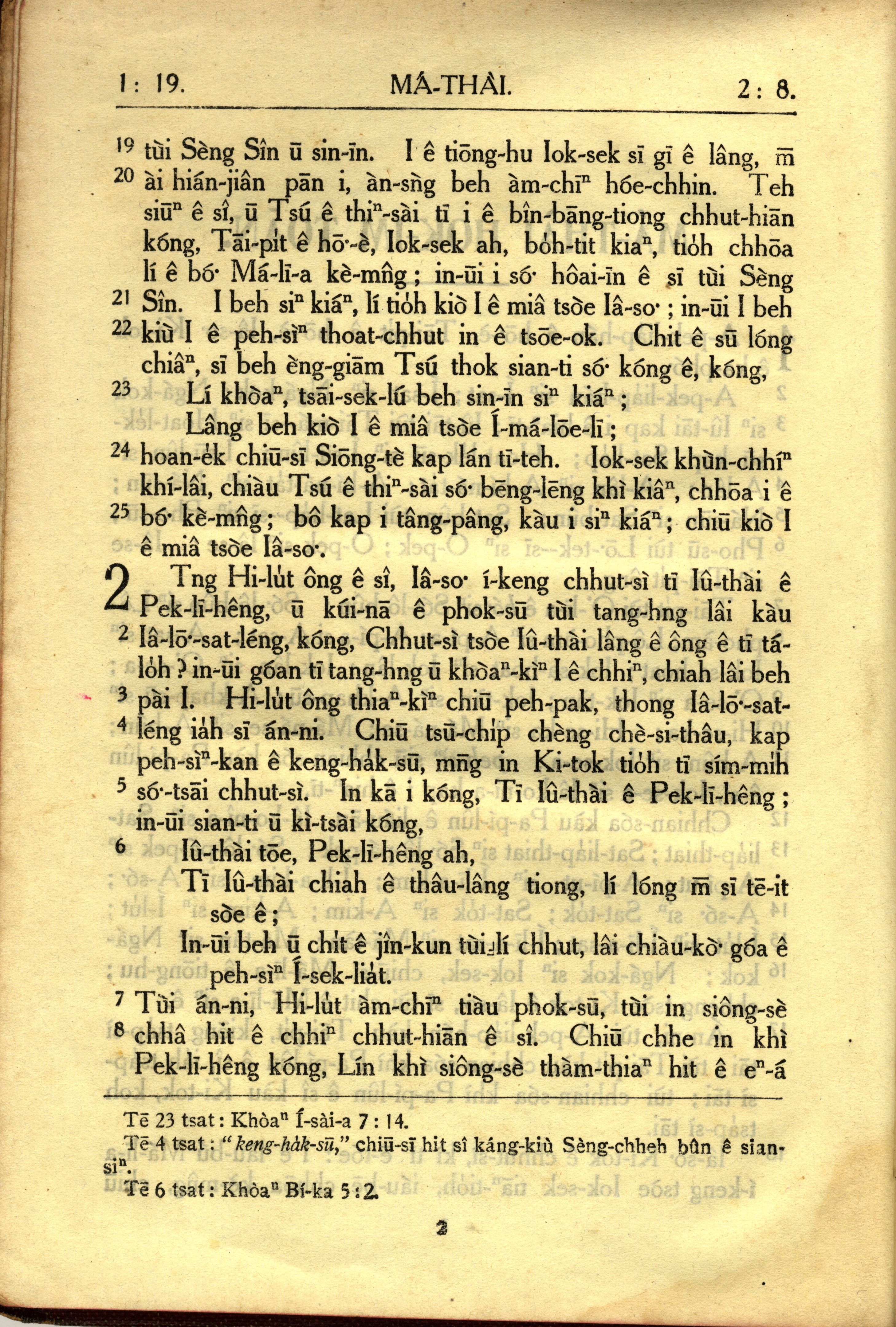 1950年教羅新約全書 馬太福音 1 章 19 節到 2 章 8 節
