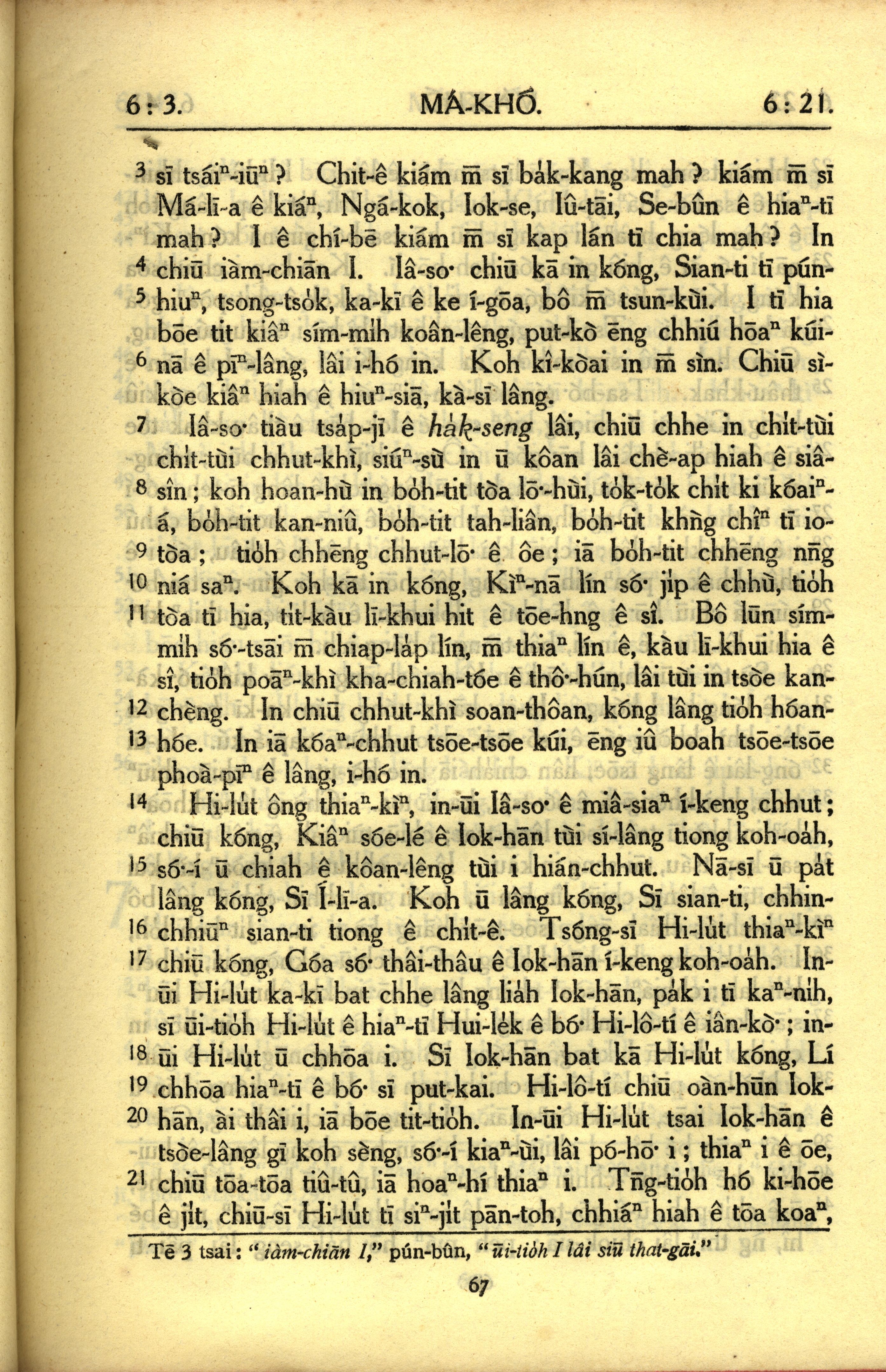 1950年教羅新約全書 馬可福音 6 章 3 節到 6 章 21 節