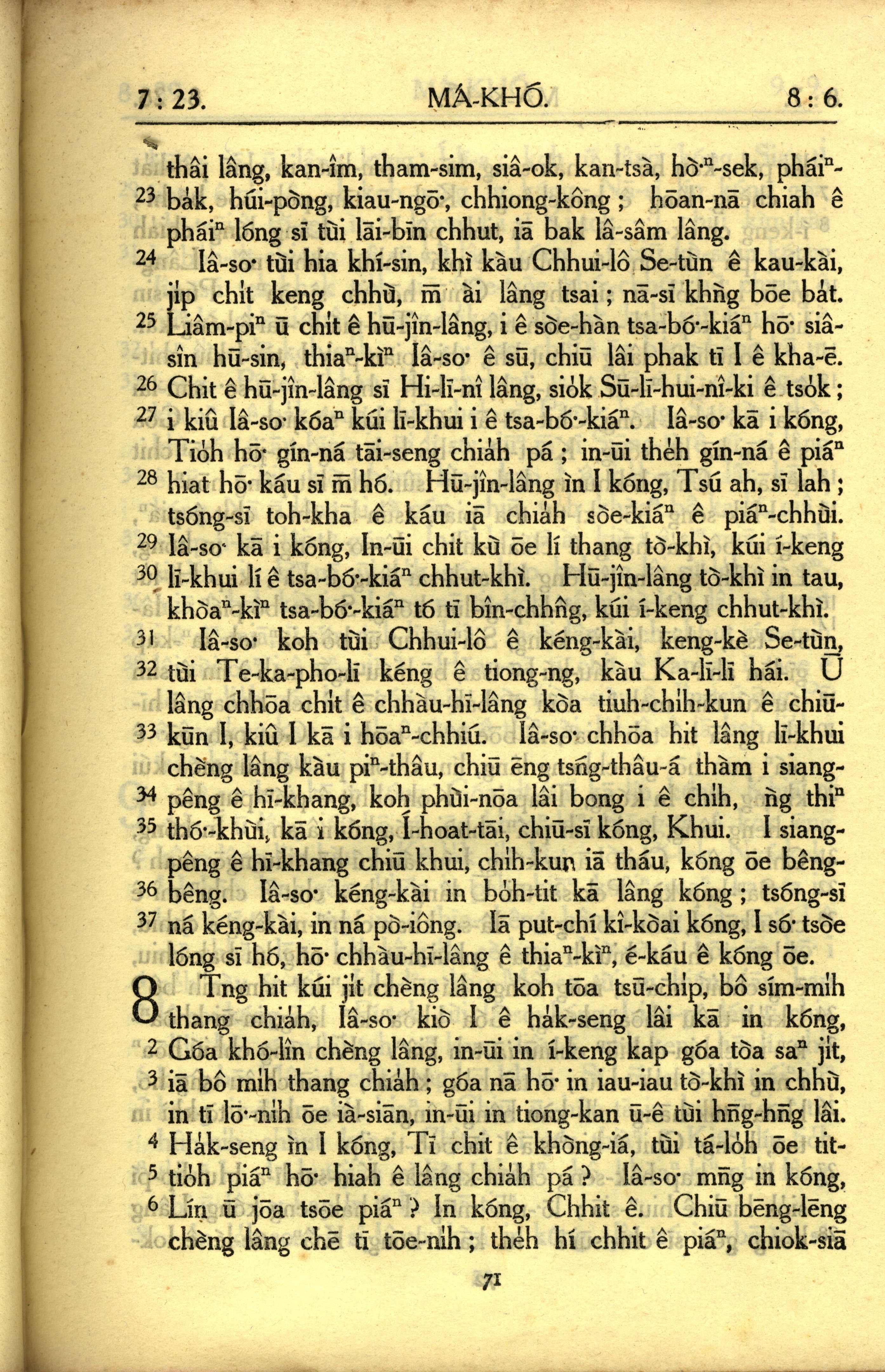 1950年教羅新約全書 馬可福音 7 章 23 節到 8 章 6 節