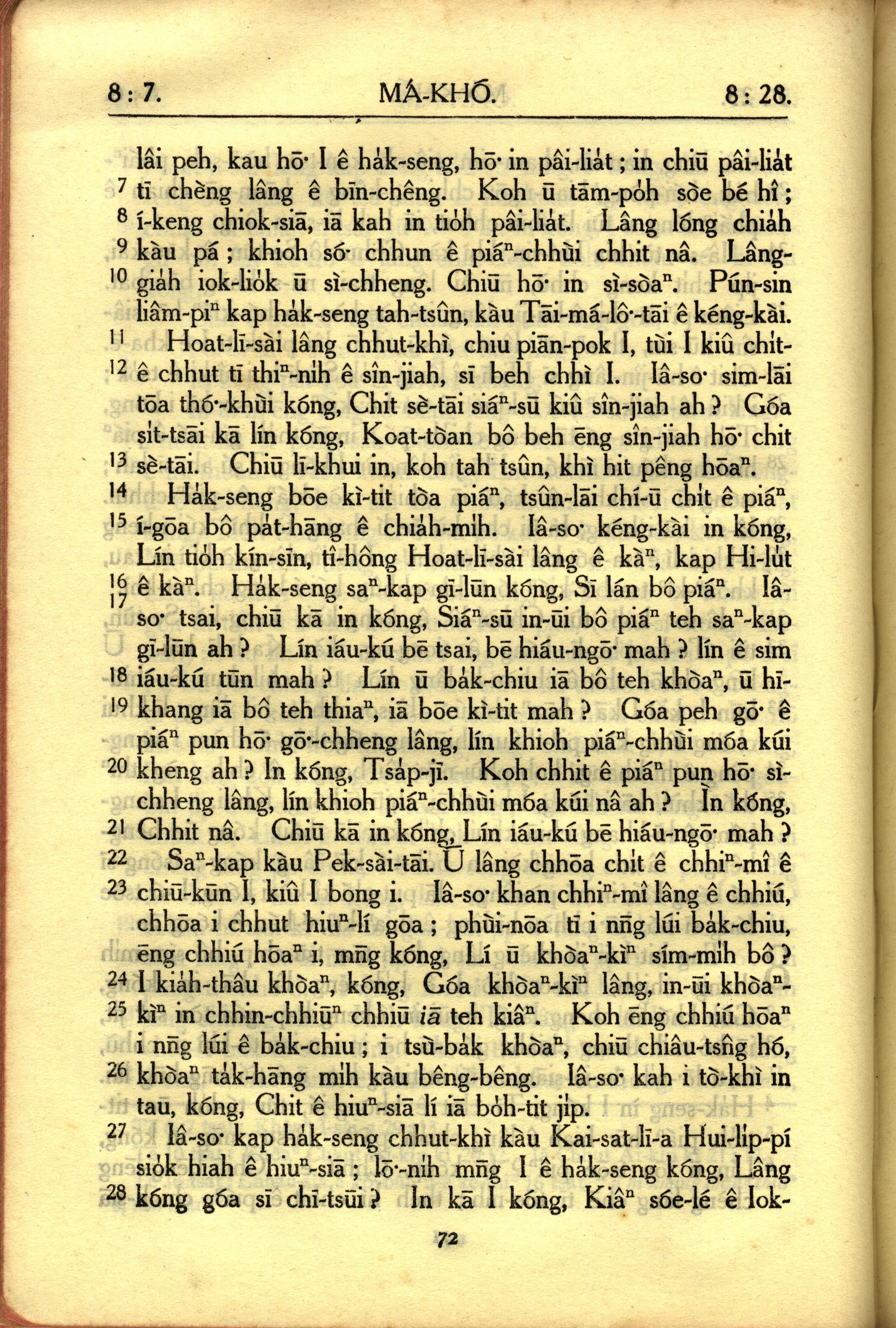 1950年教羅新約全書 馬可福音 8 章 7 節到 8 章 28 節
