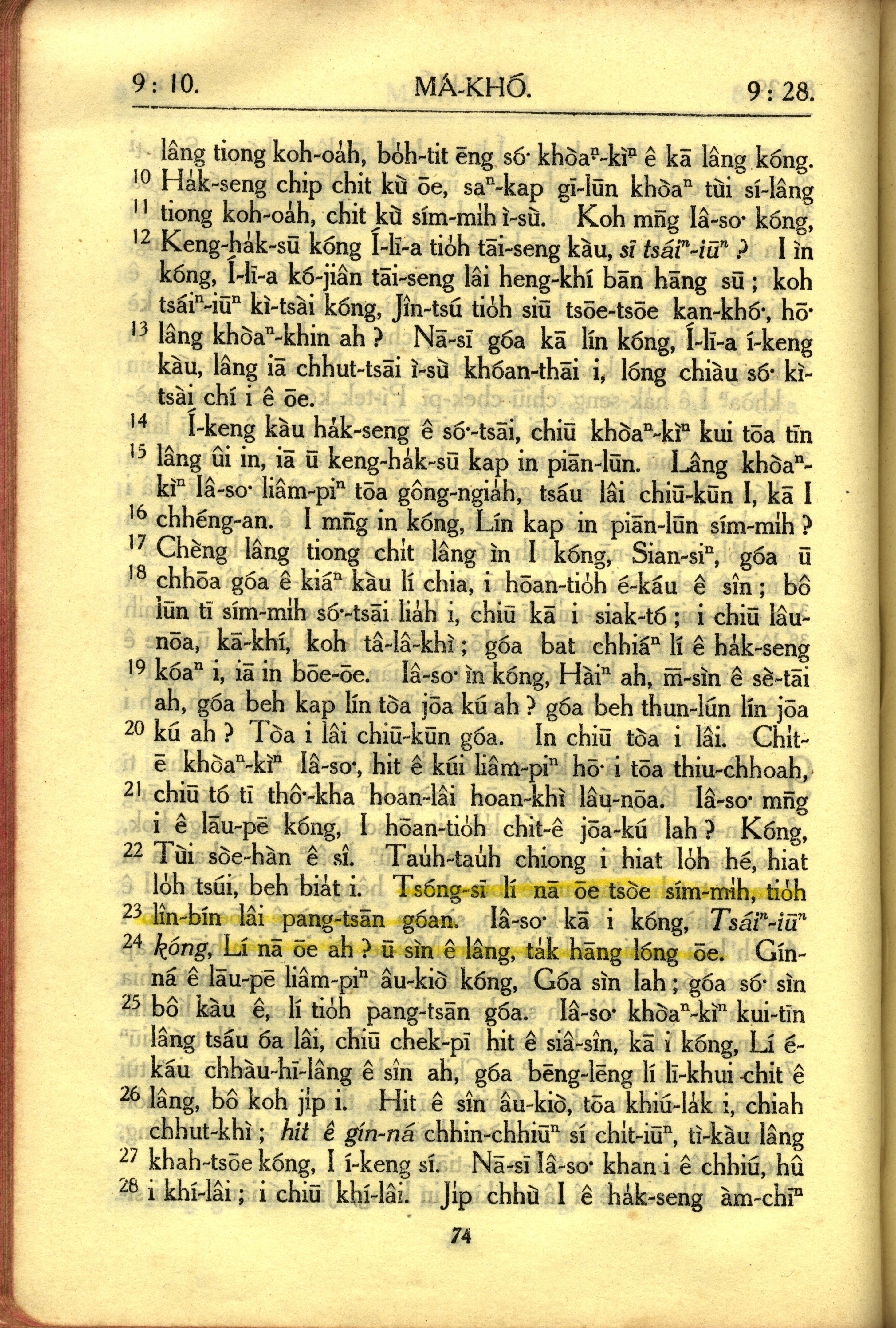 1950年教羅新約全書 馬可福音 9 章 10 節到 9 章 28 節