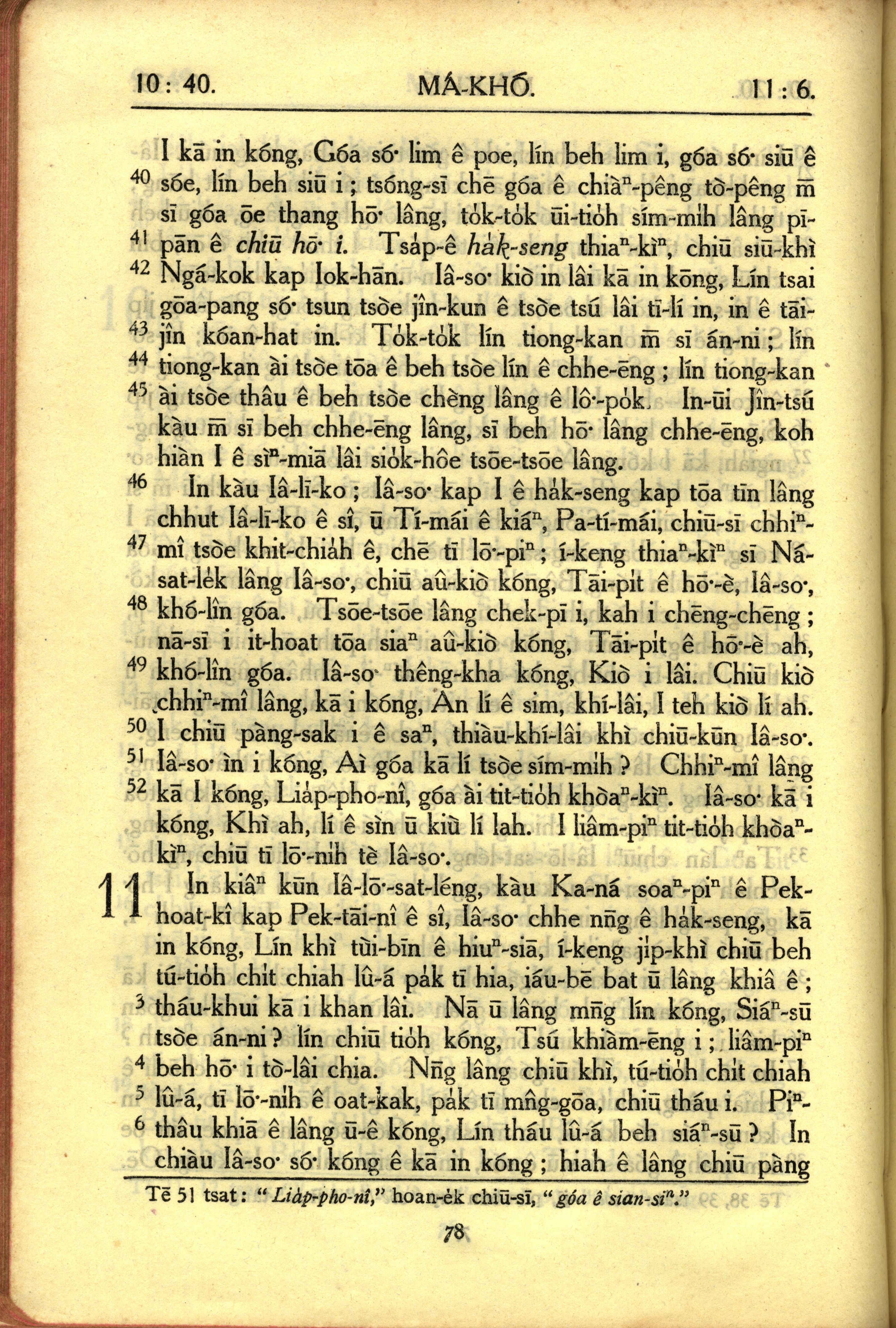 1950年教羅新約全書 馬可福音 10 章 40 節到 11 章 6 節