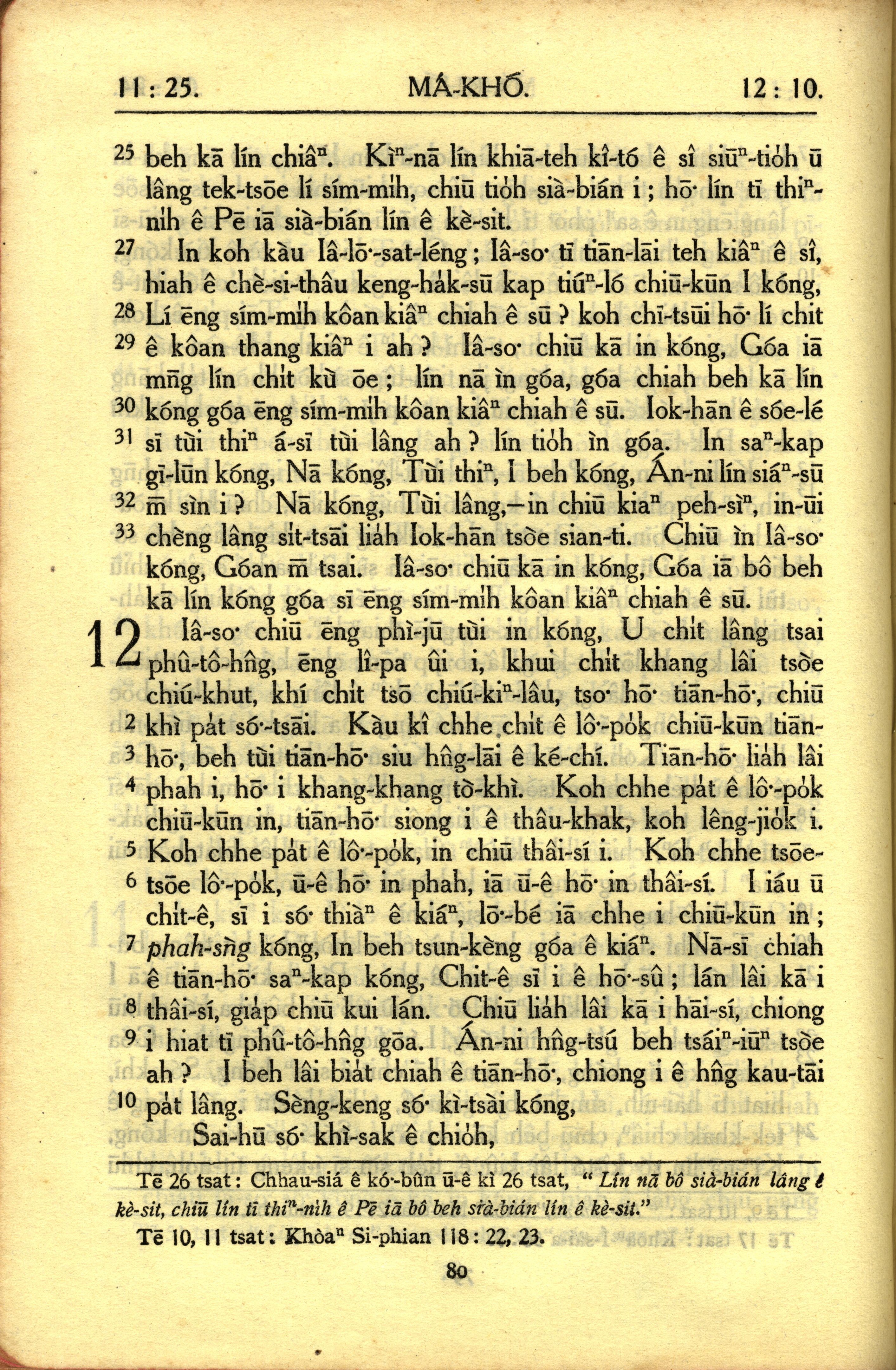 1950年教羅新約全書 馬可福音 11 章 25 節到 12 章 10 節