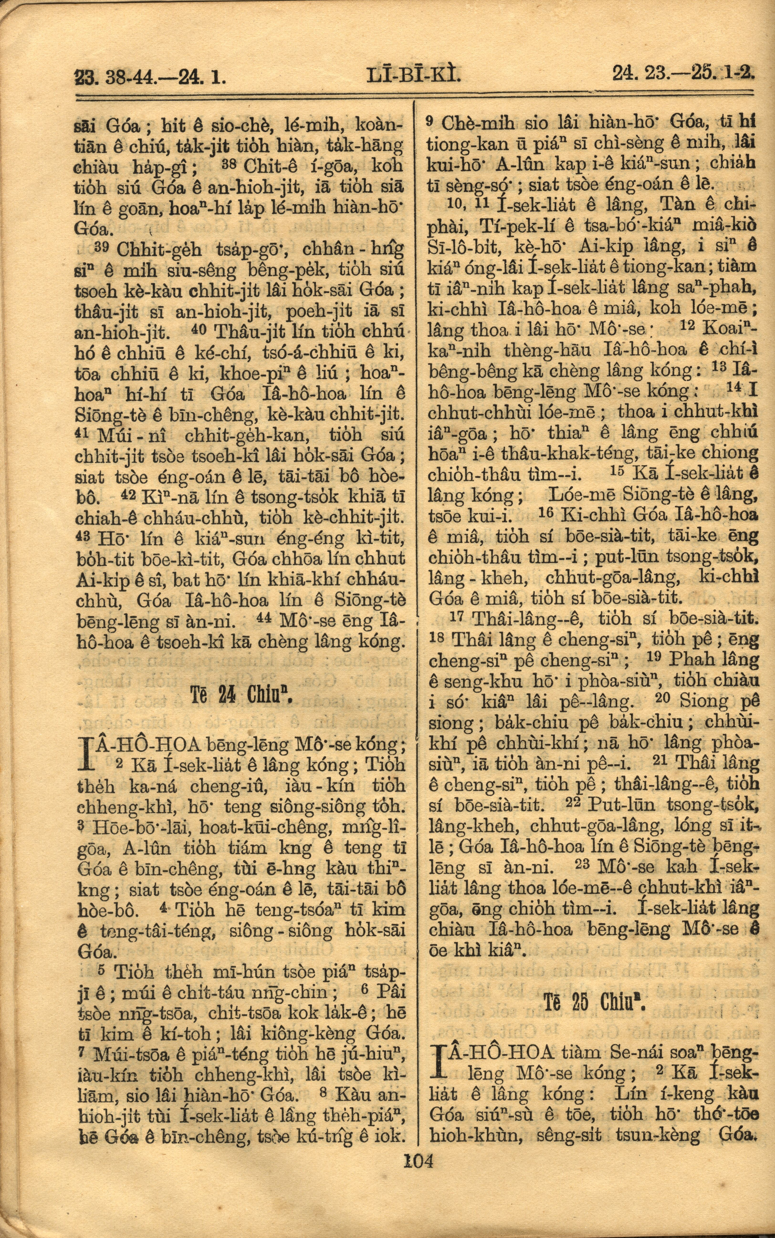 1921年羅馬字舊約全書 利未記 23 章 38 節到 25 章 2 節