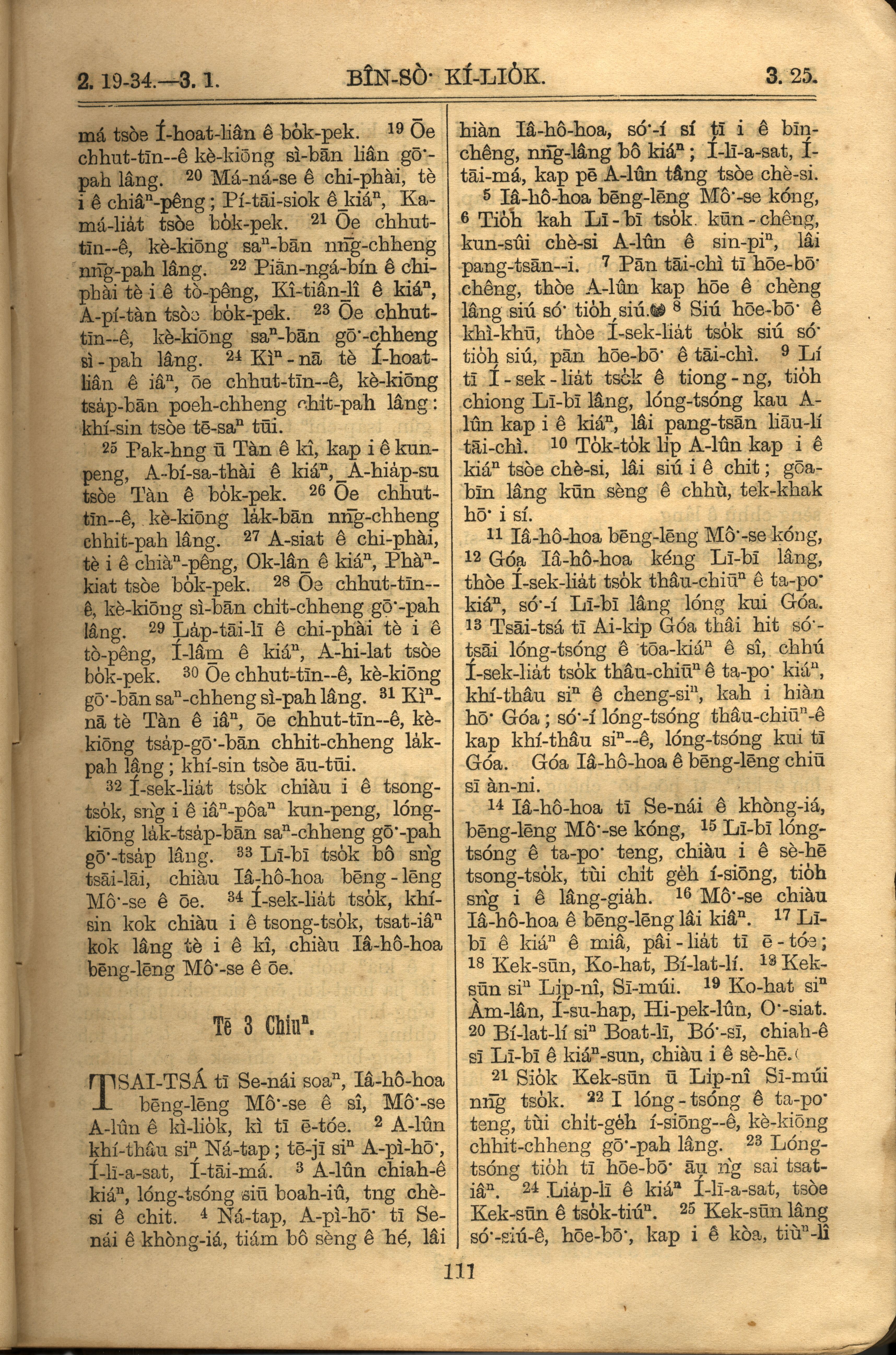 1921年羅馬字舊約全書 民數記 2 章 19 節到 3 章 25 節