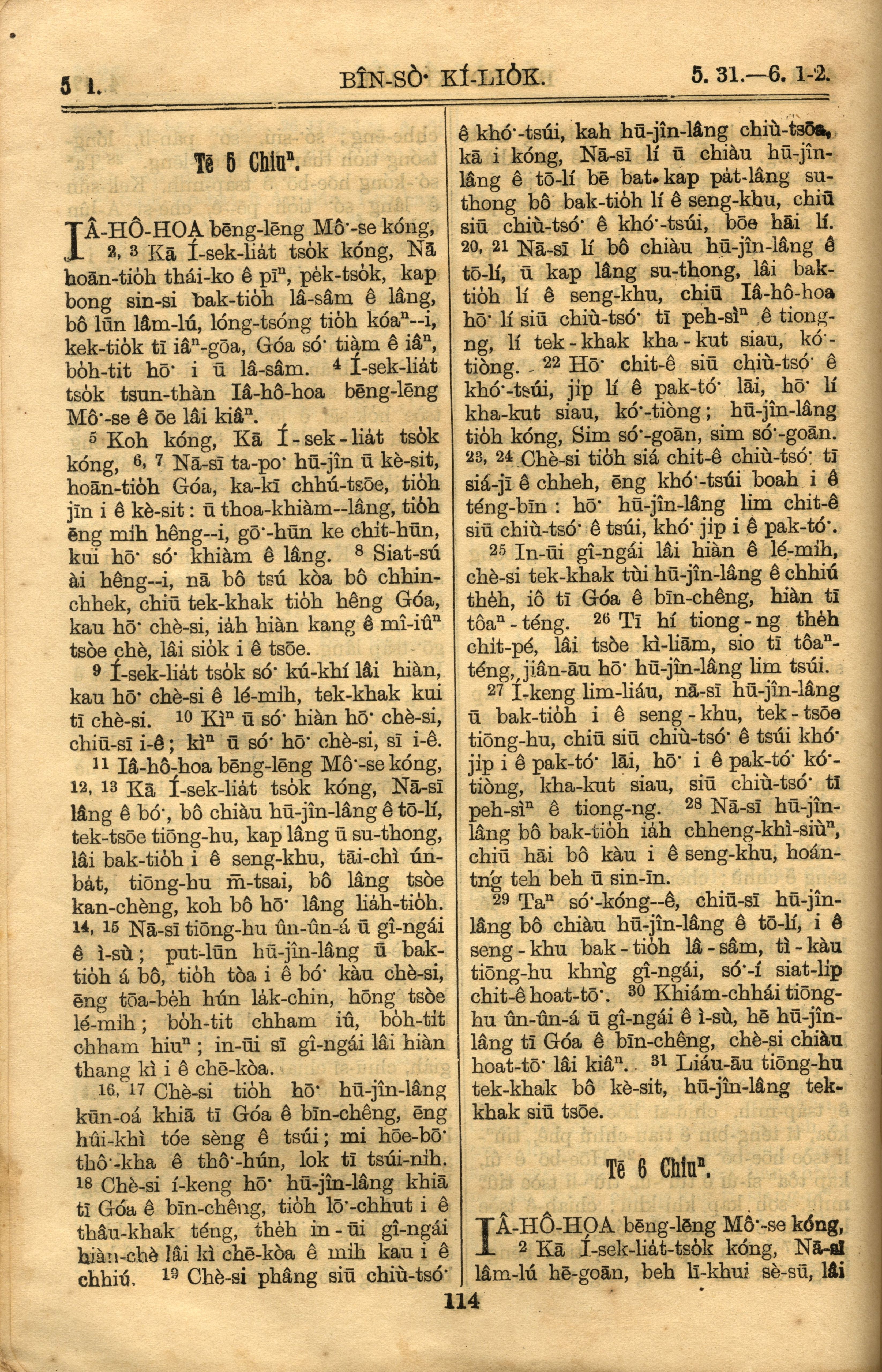 1921年羅馬字舊約全書 民數記 5 章 1 節到 6 章 2 節