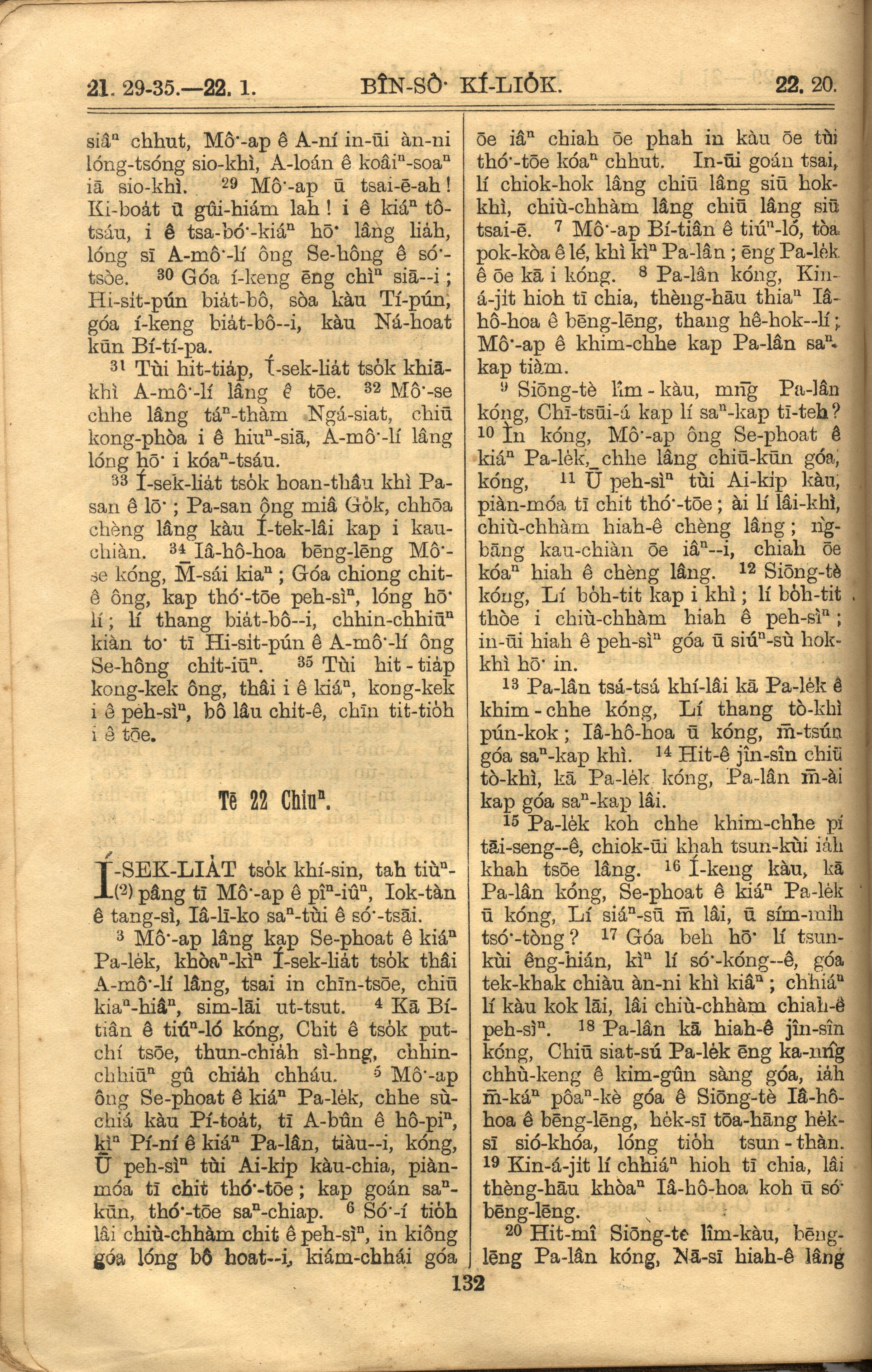 1921年羅馬字舊約全書 民數記 21 章 29 節到 22 章 20 節