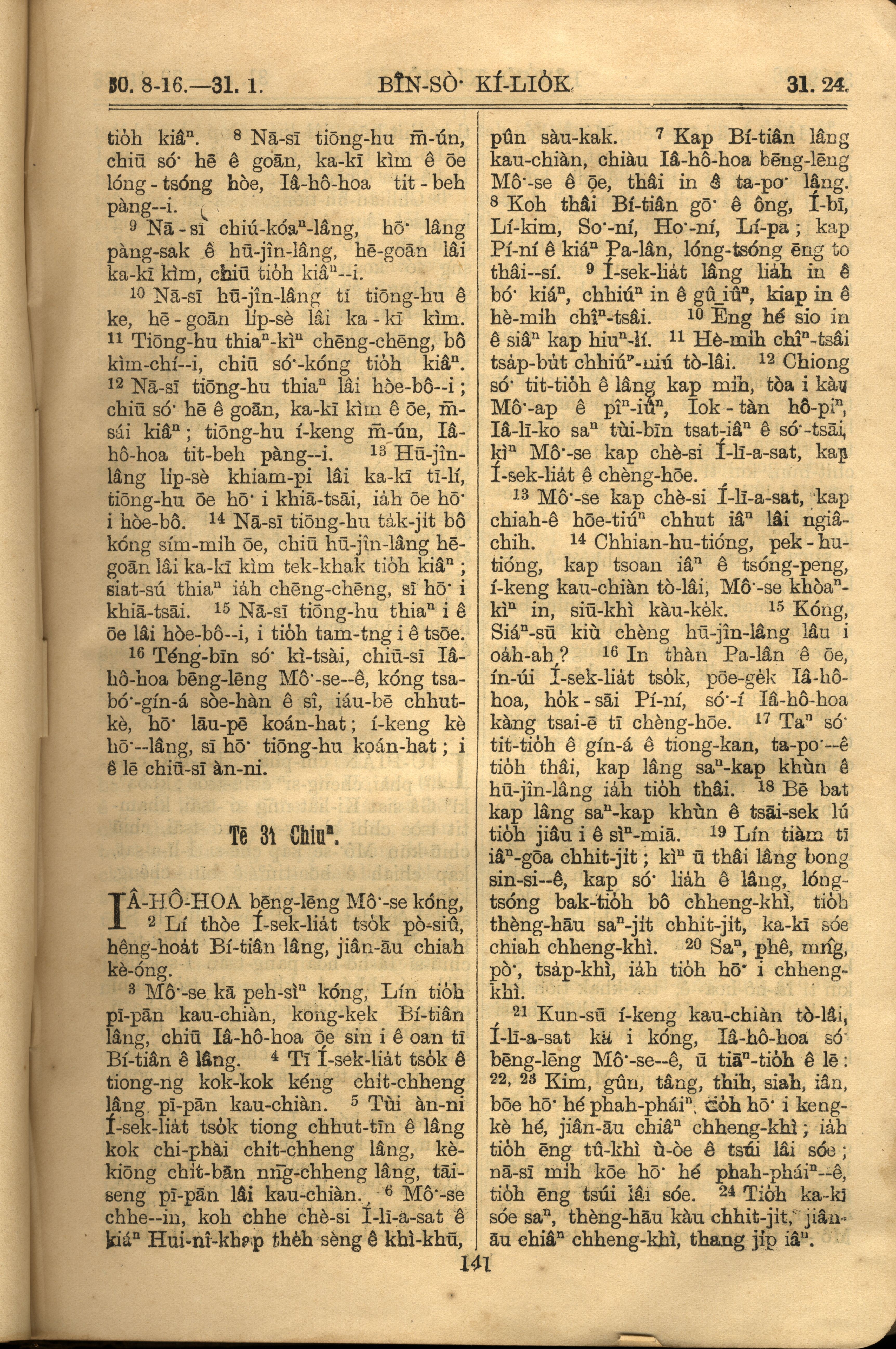 1921年羅馬字舊約全書 民數記 30 章 8 節到 31 章 24 節