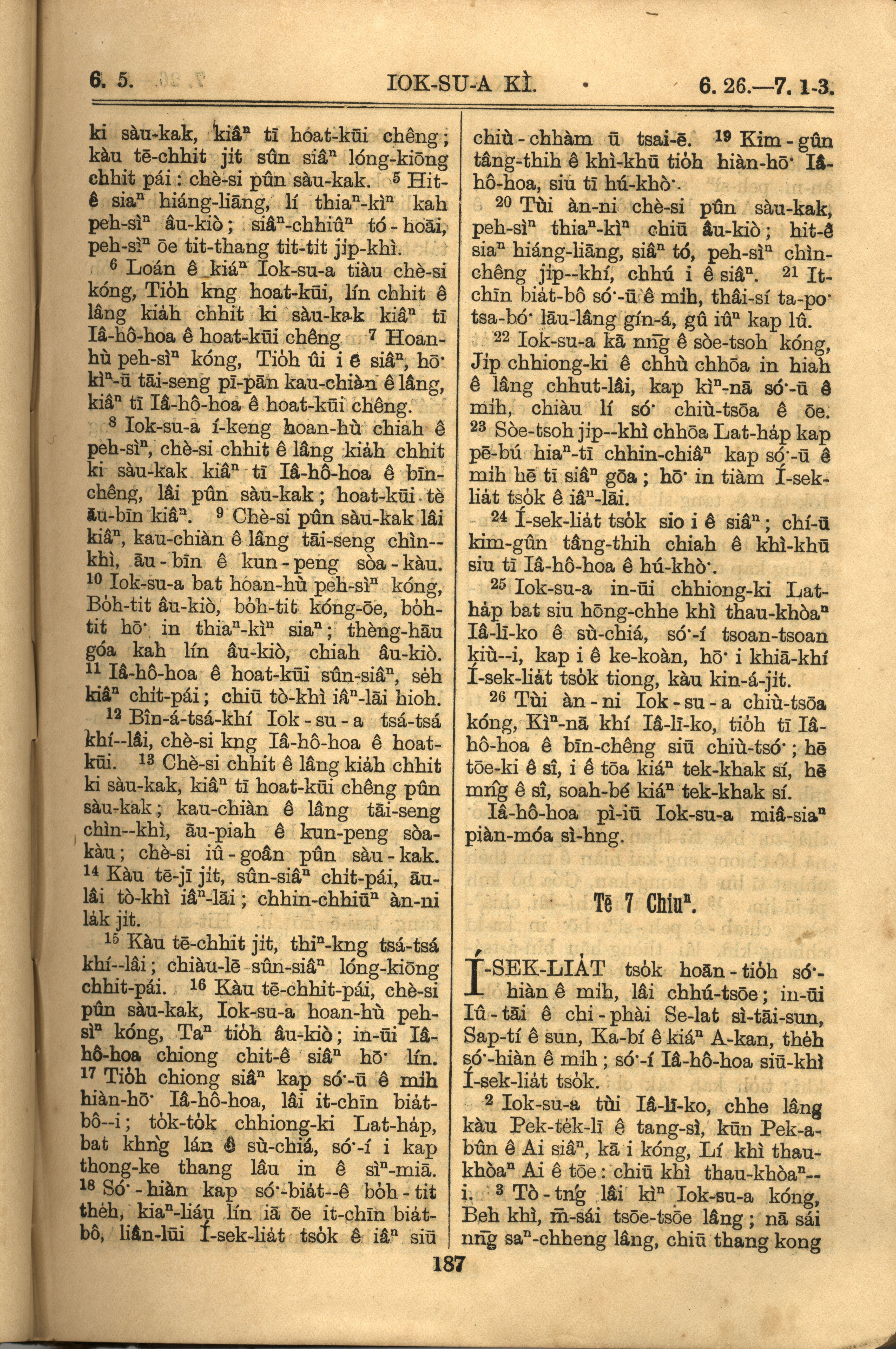 1921年羅馬字舊約全書 約書亞記 6 章 5 節到 7 章 3 節