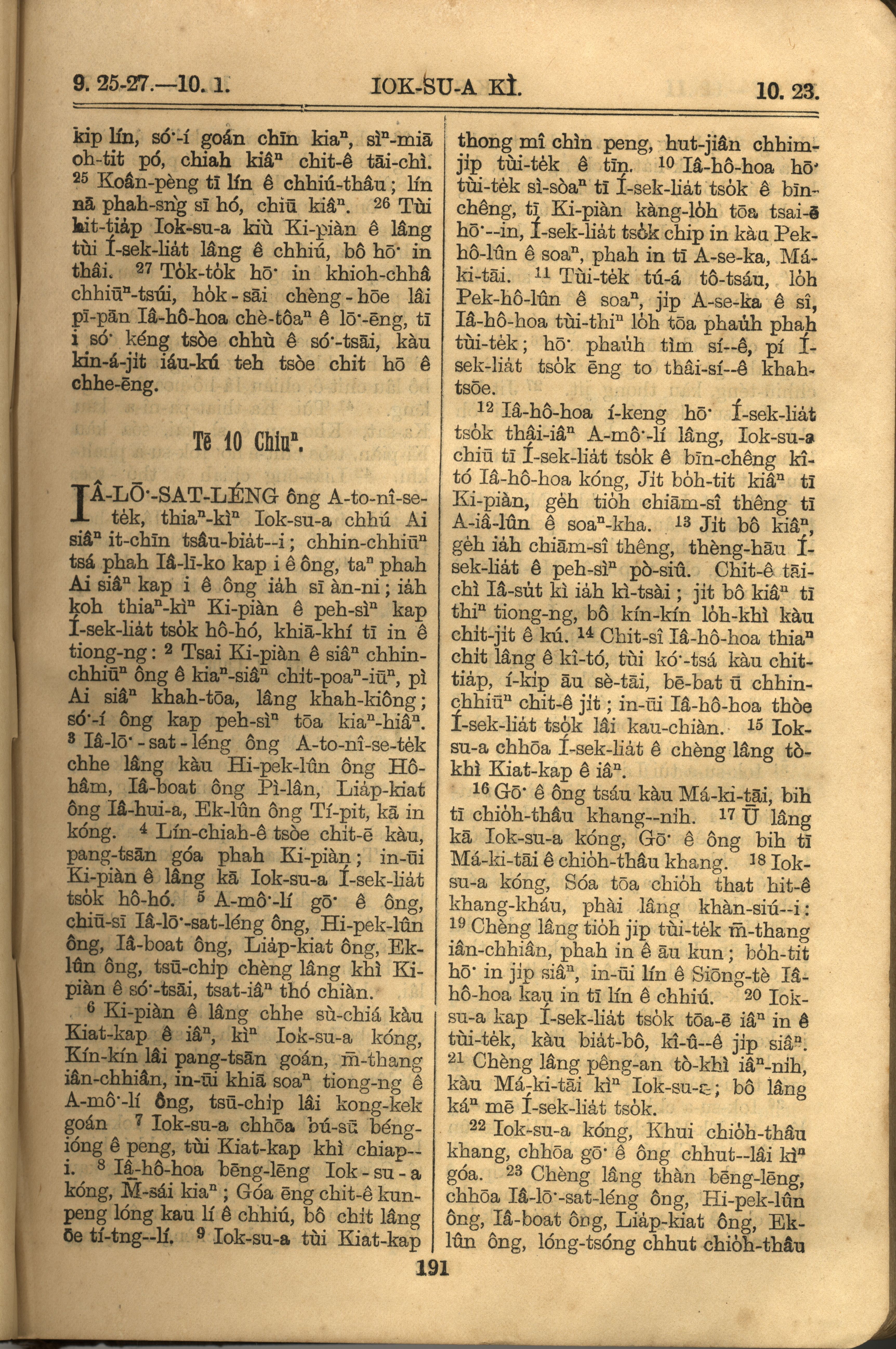 1921年羅馬字舊約全書 約書亞記 9 章 25 節到 10 章 23 節