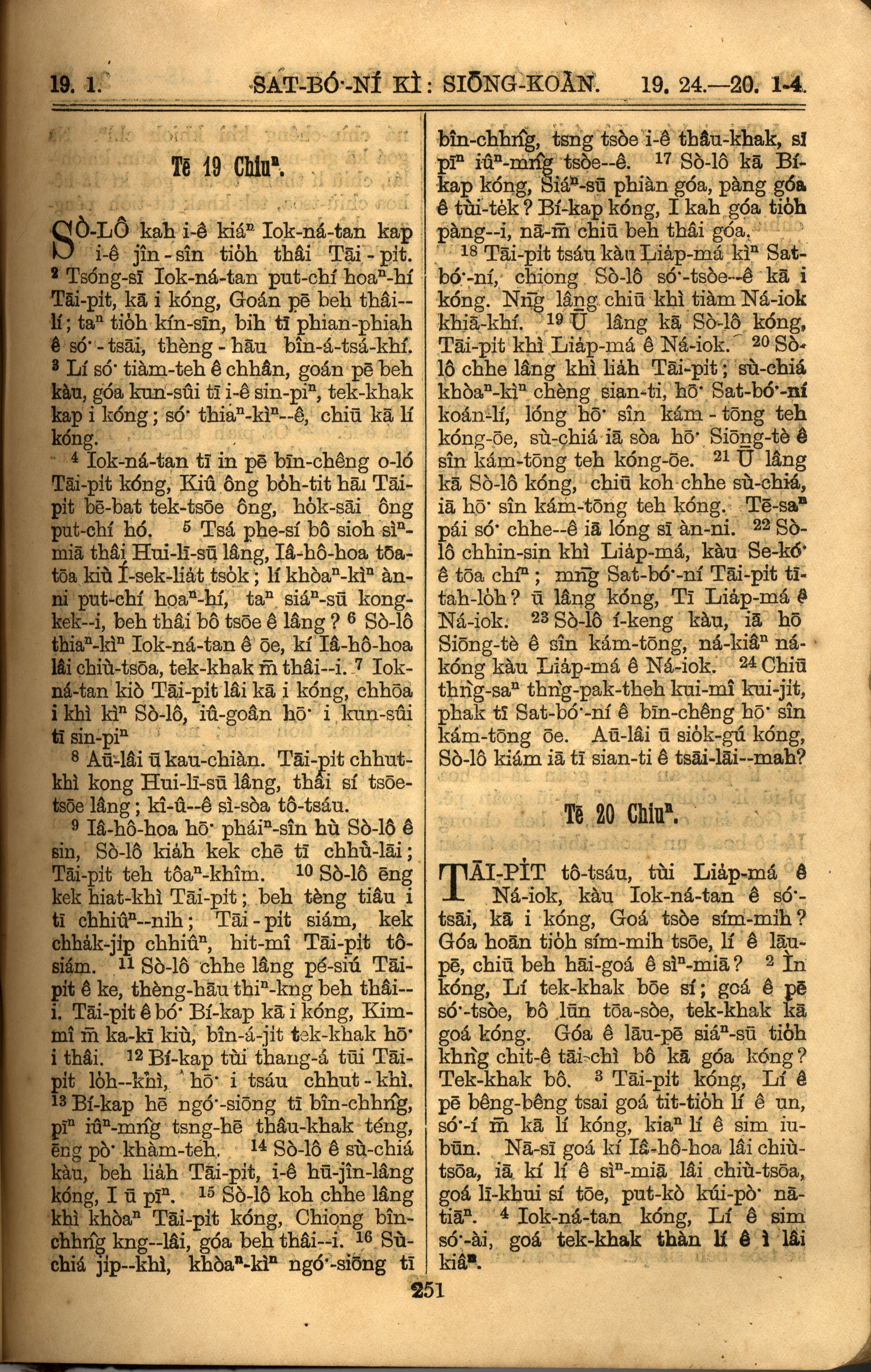 1921年羅馬字舊約全書 撒母耳記上 19 章 1 節到 20 章 4 節