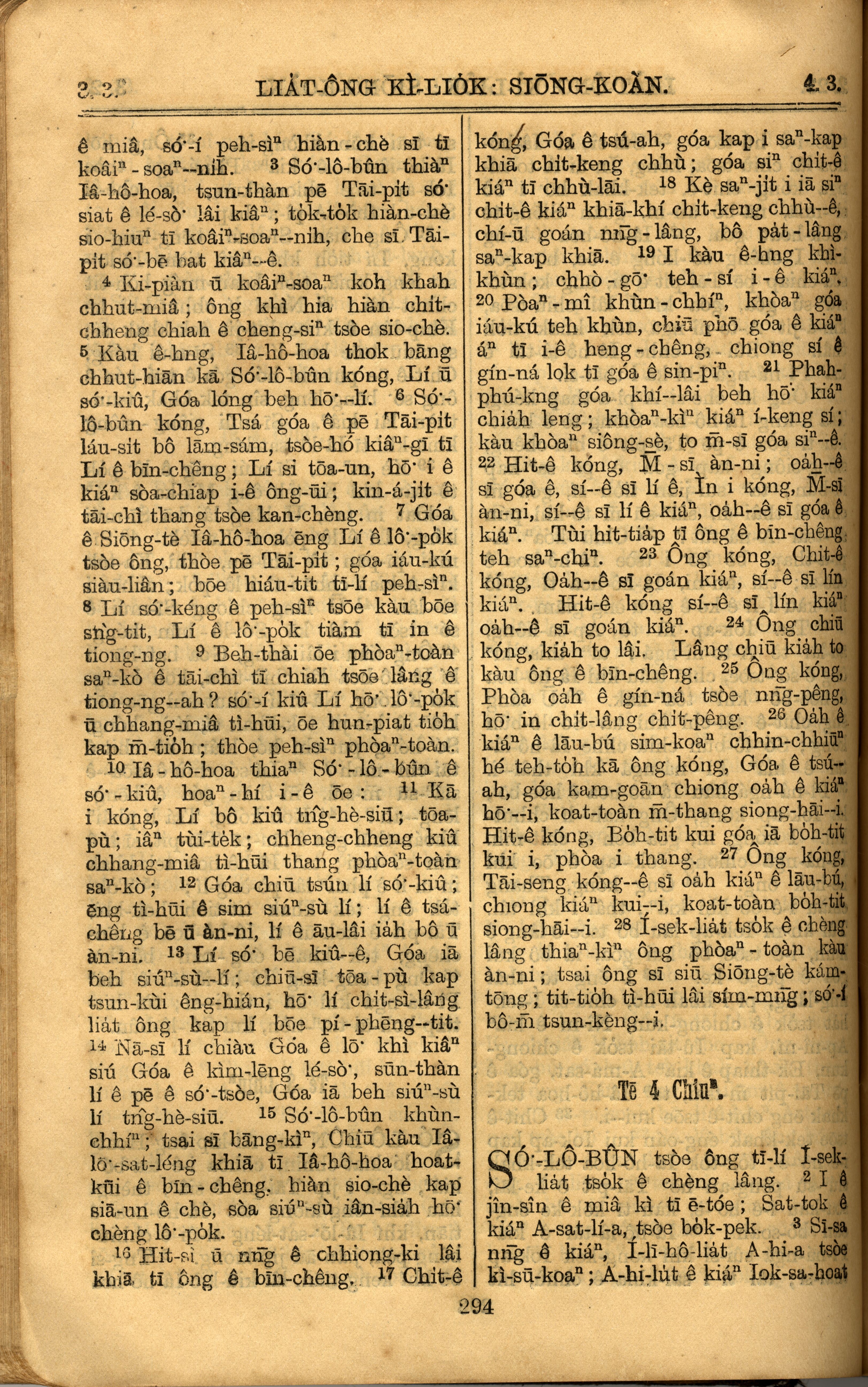 1921年羅馬字舊約全書 列王紀上 3 章 3 節到 4 章 3 節