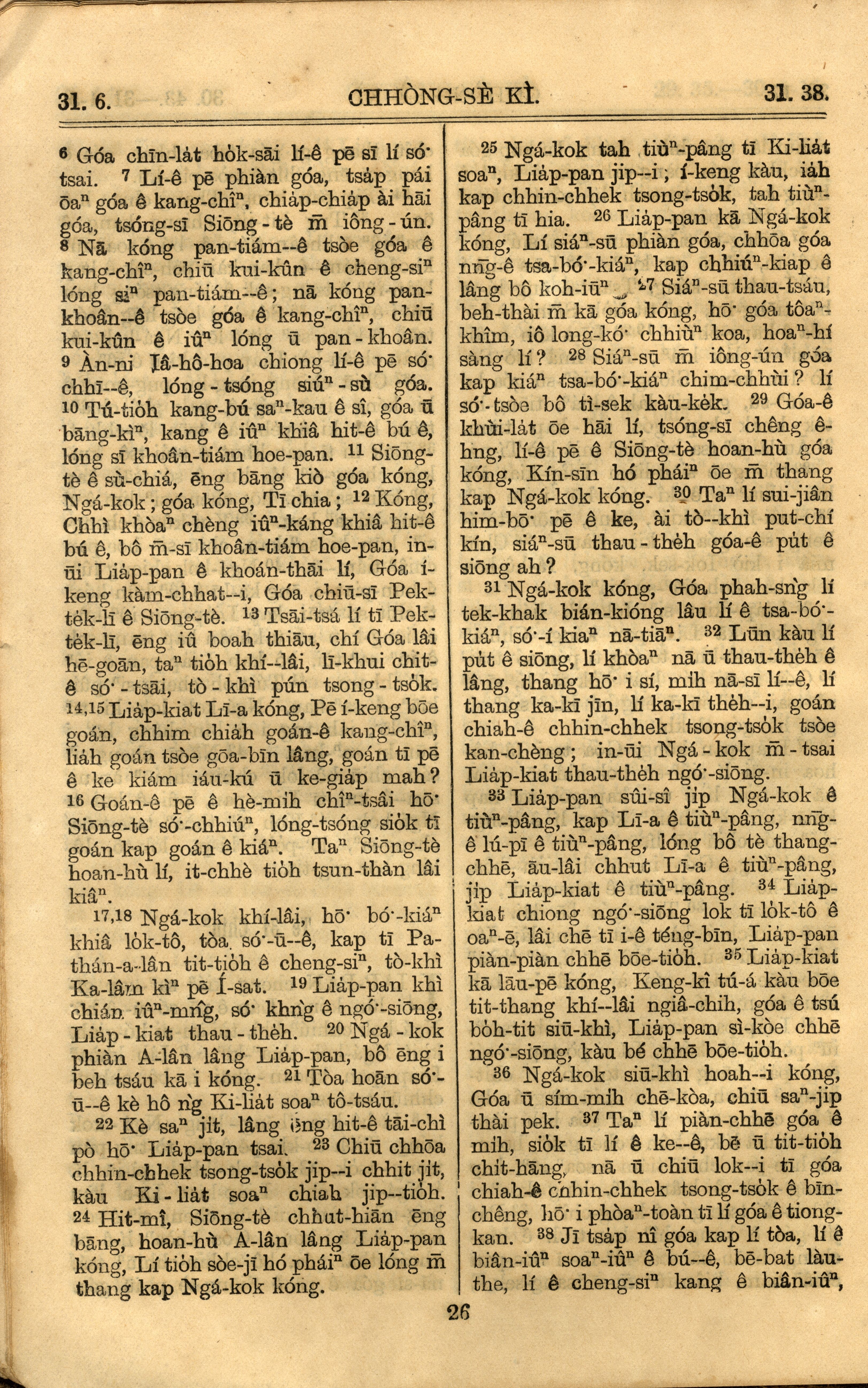 1921年羅馬字舊約全書 創世記 31 章 6 節到 31 章 38 節