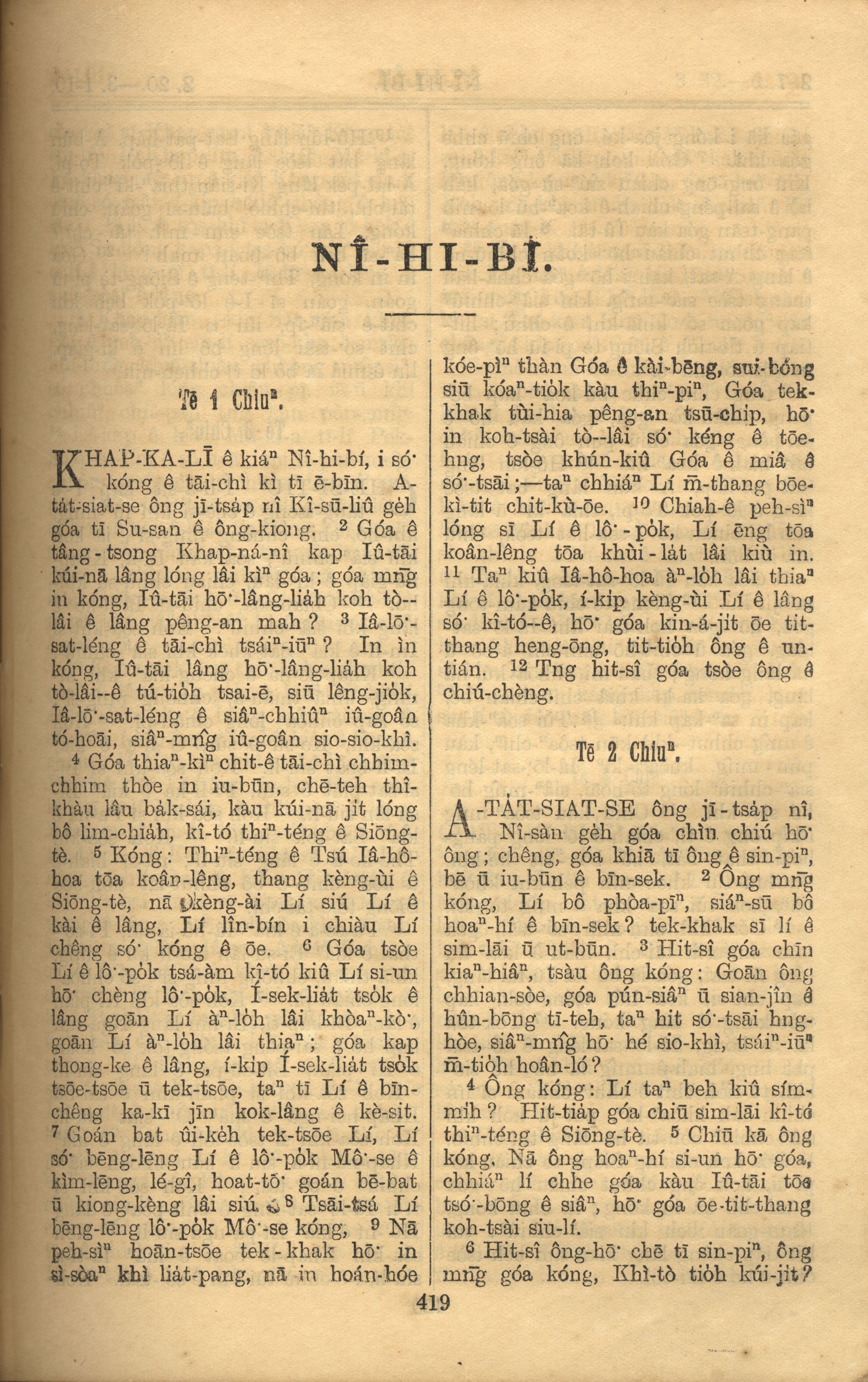 1921年羅馬字舊約全書 尼希米記 1 章 1 節到 2 章 6 節