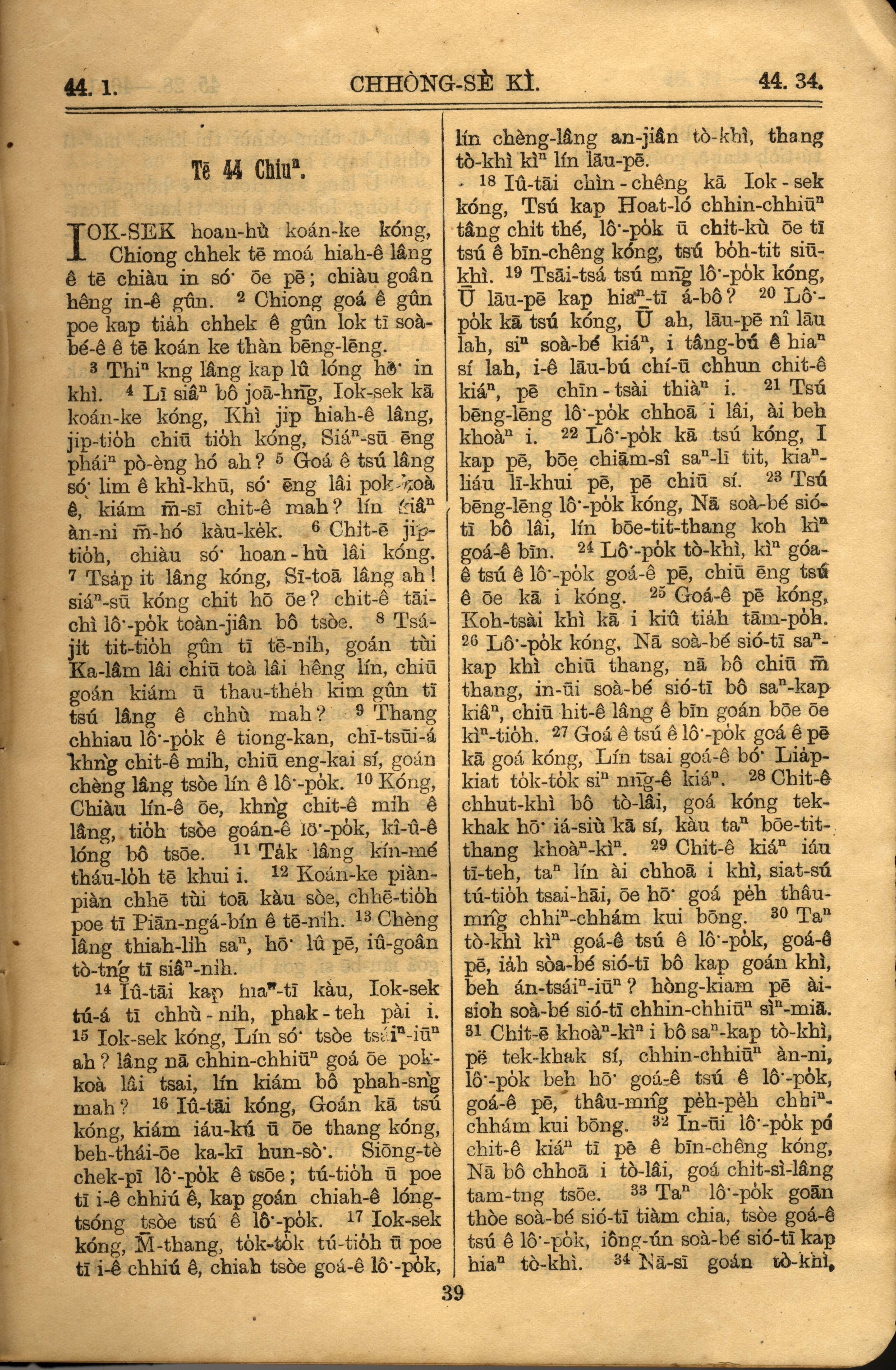 1921年羅馬字舊約全書 創世記 44 章 1 節到 44 章 34 節