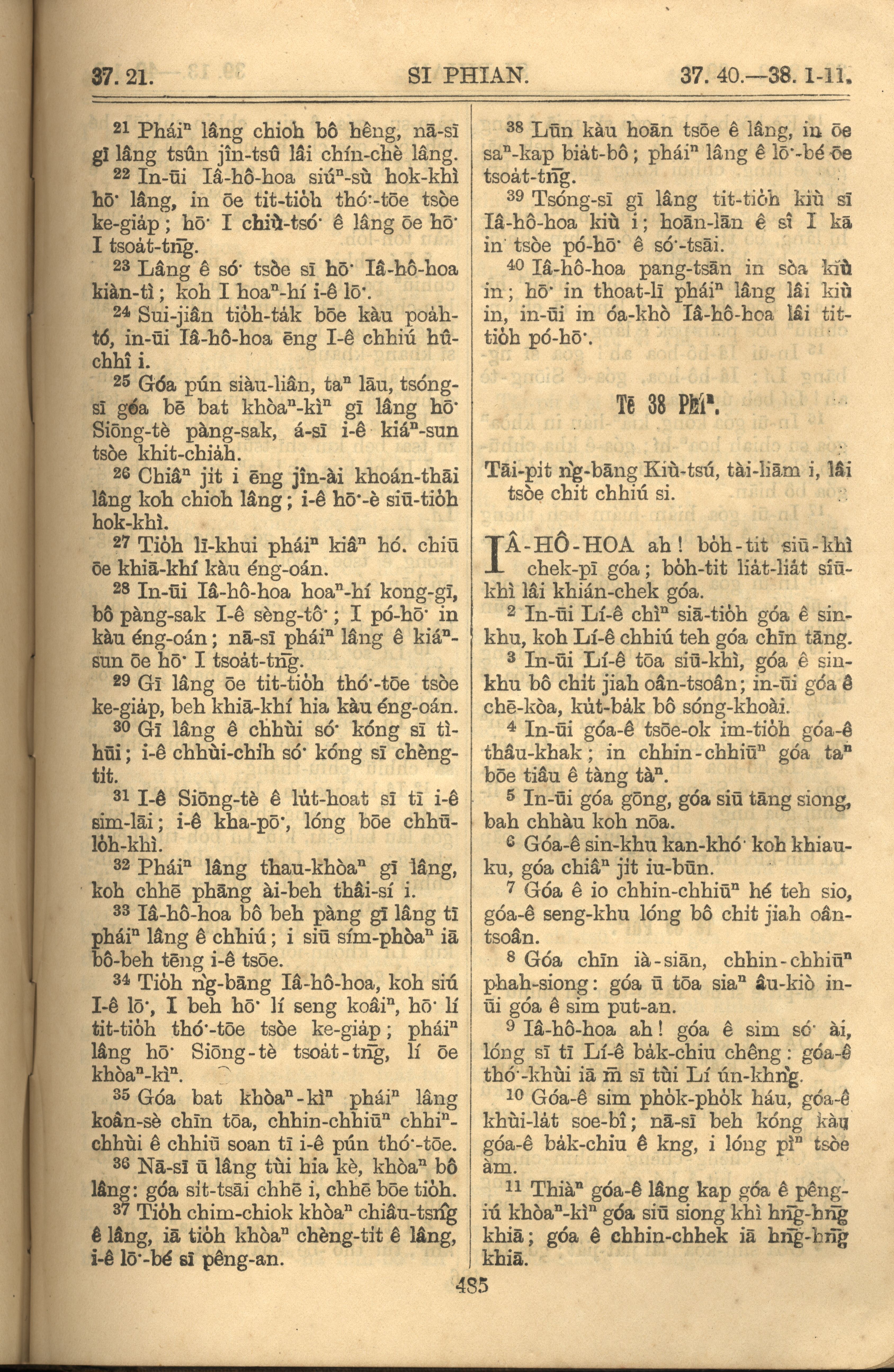 1921年羅馬字舊約全書 詩篇 37 章 21 節到 38 章 11 節