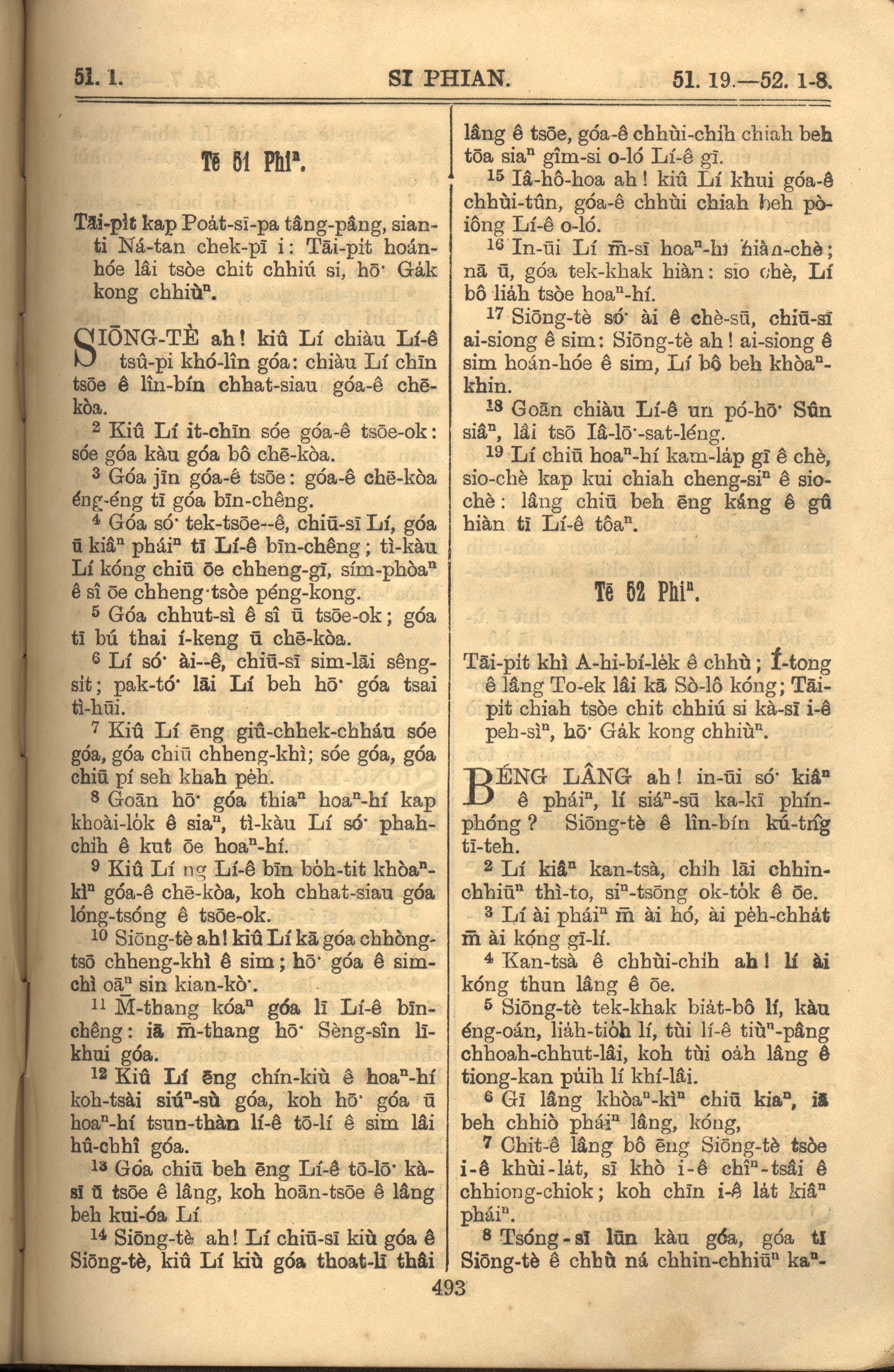 1921年羅馬字舊約全書 詩篇 51 章 1 節到 52 章 8 節