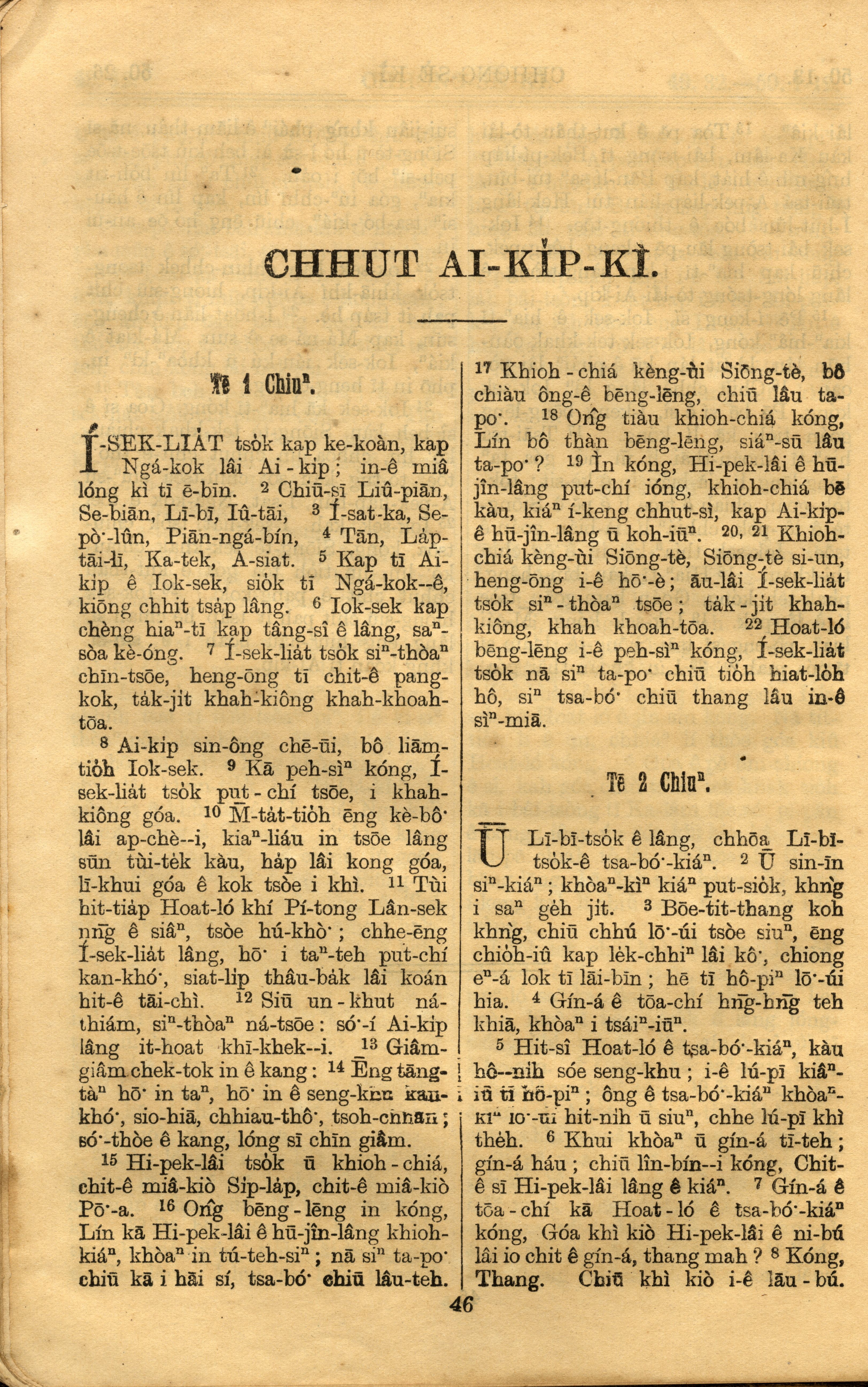 1921年羅馬字舊約全書 出埃及記 1 章 1 節到 2 章 8 節
