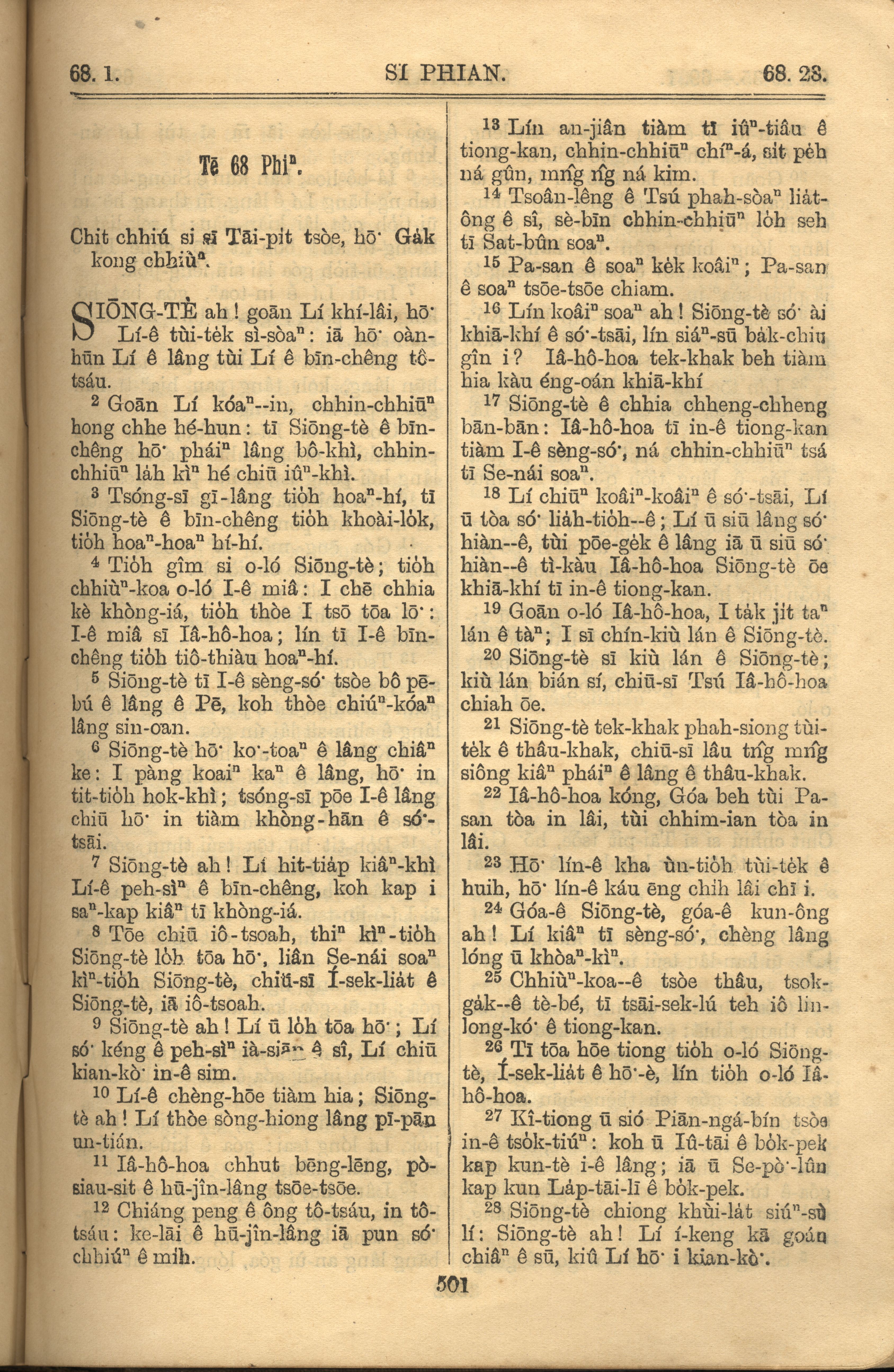 1921年羅馬字舊約全書 詩篇 68 章 1 節到 68 章 28 節